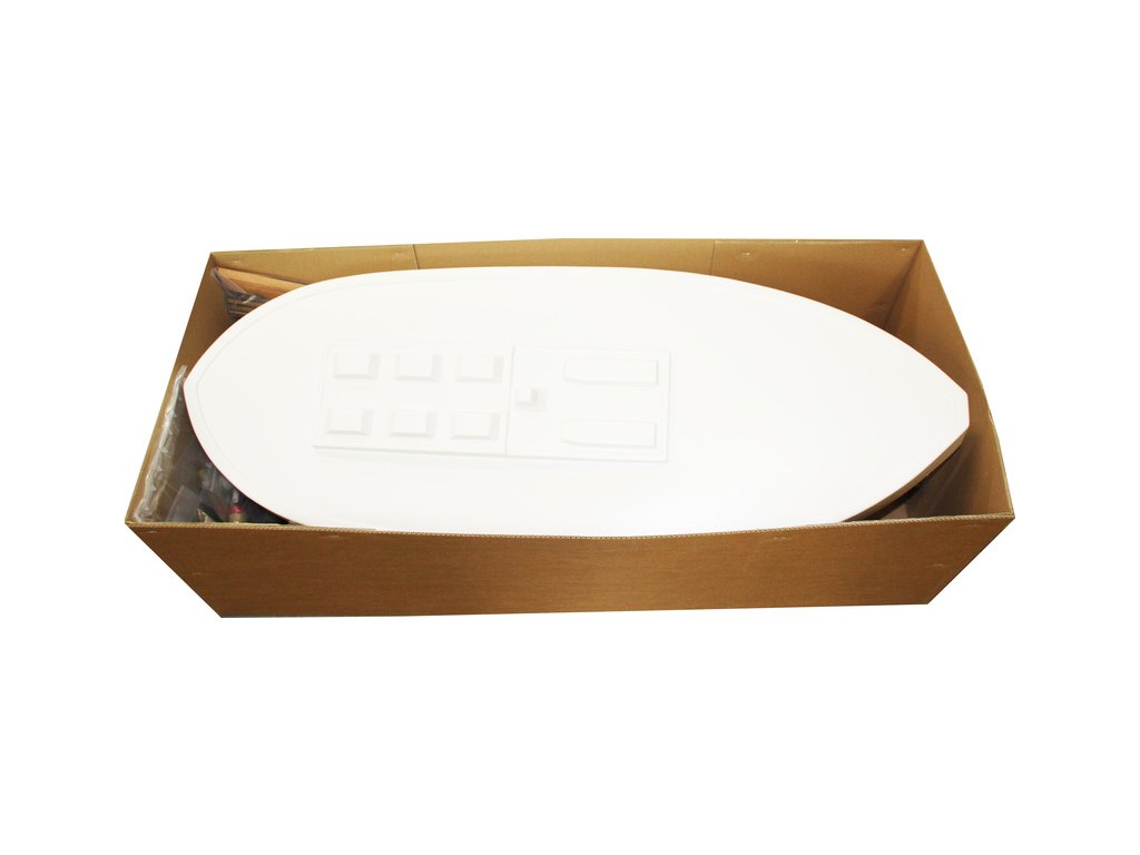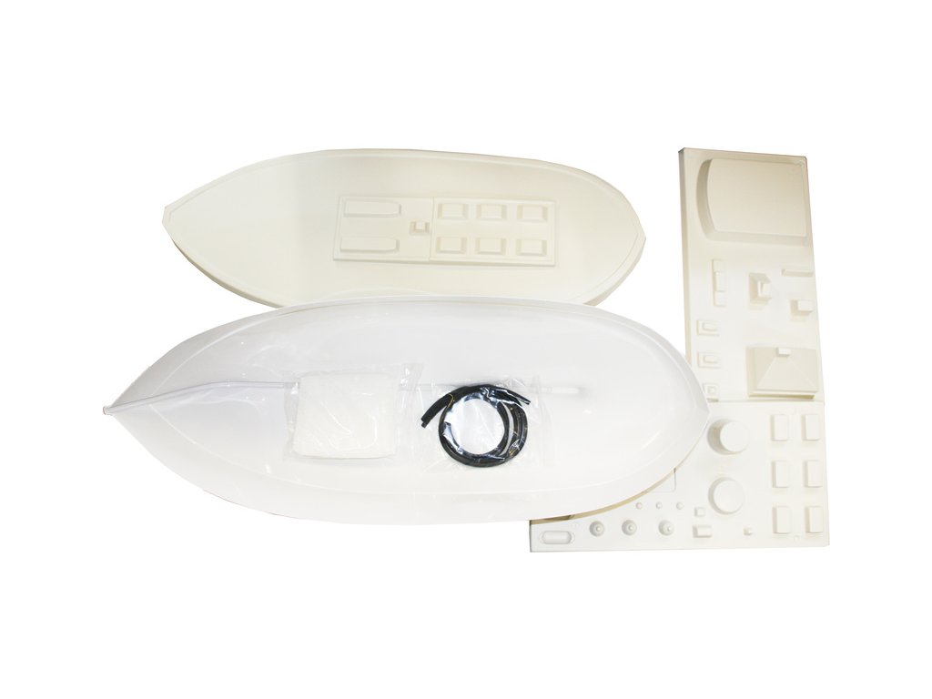 Plovoucí RC model, je nutné připravit k montáži a rozmístění jednotlivých součástí elektroniky a pohonu. Doplnit je třeba motor, regulátor, servo, RC soupravu, akumulátor, nabíječ a další příslušenství.