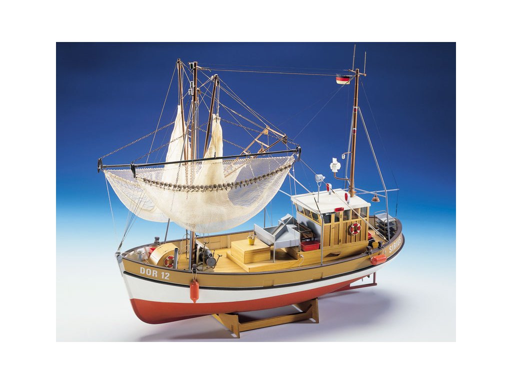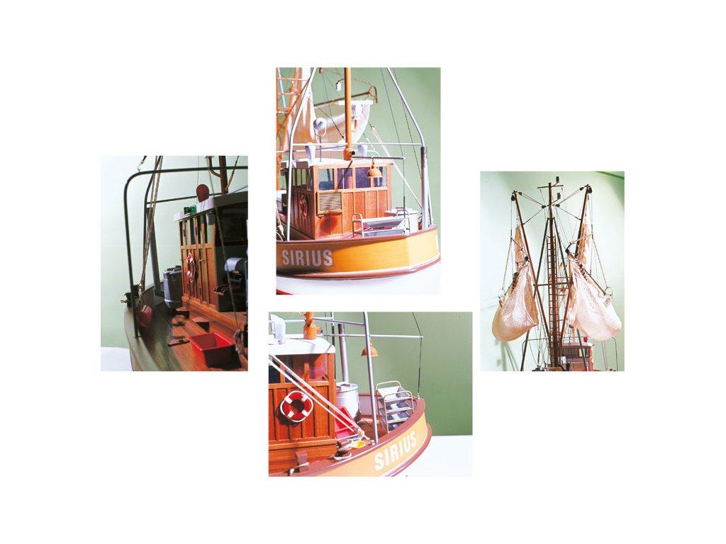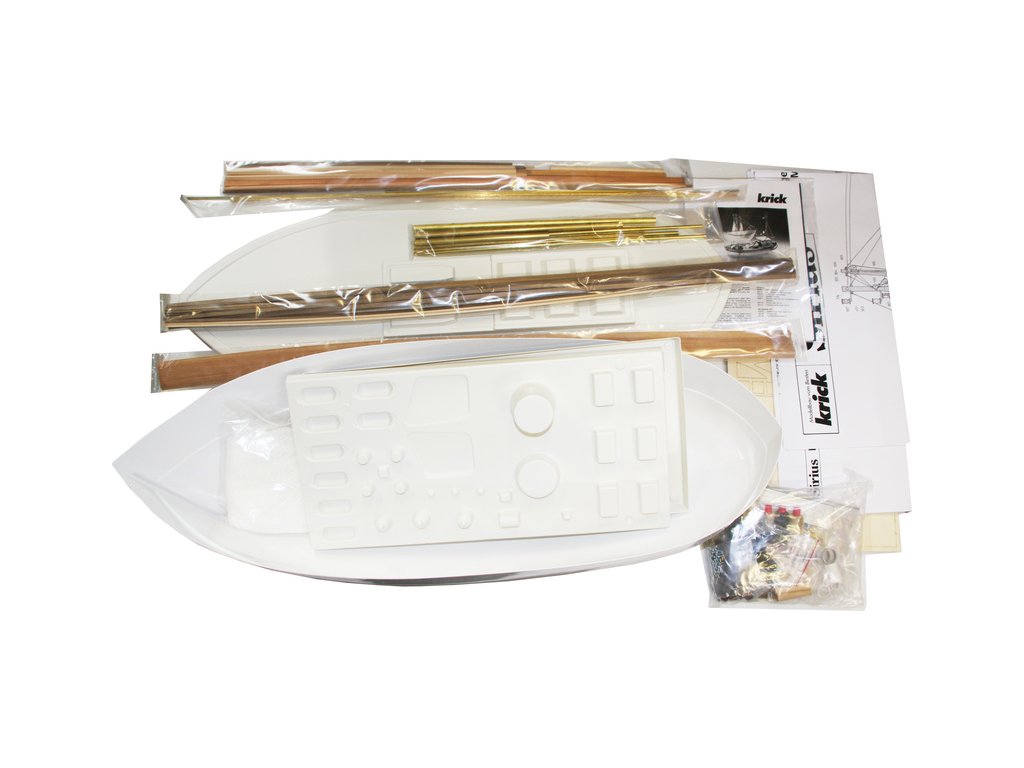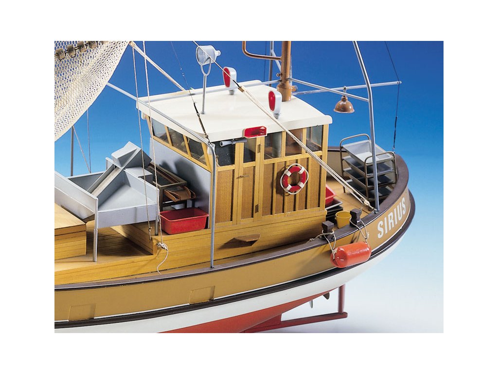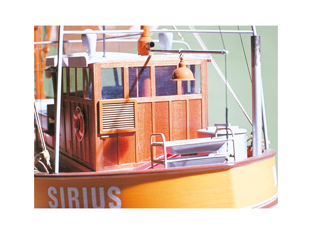 Stavebnice makety rybářského kutru Sirius je atraktivním modelem lodi v měřítku 1:16. Při délce 900mm lze věrně zpracovat detaily a navíc loď lze vybavit pohonem a vším potřebným pro provoz na vodě. Trup je z hluboce taženého z ABS, paluba dřevěná stejně jako nástavby paluby. Stožáry, mosazné trubky a tvarovky s mnoha malými kovovými částmi jsou v balení. Podrobný plán s pokyny a mnoho detailních skic usnadňují montáž.