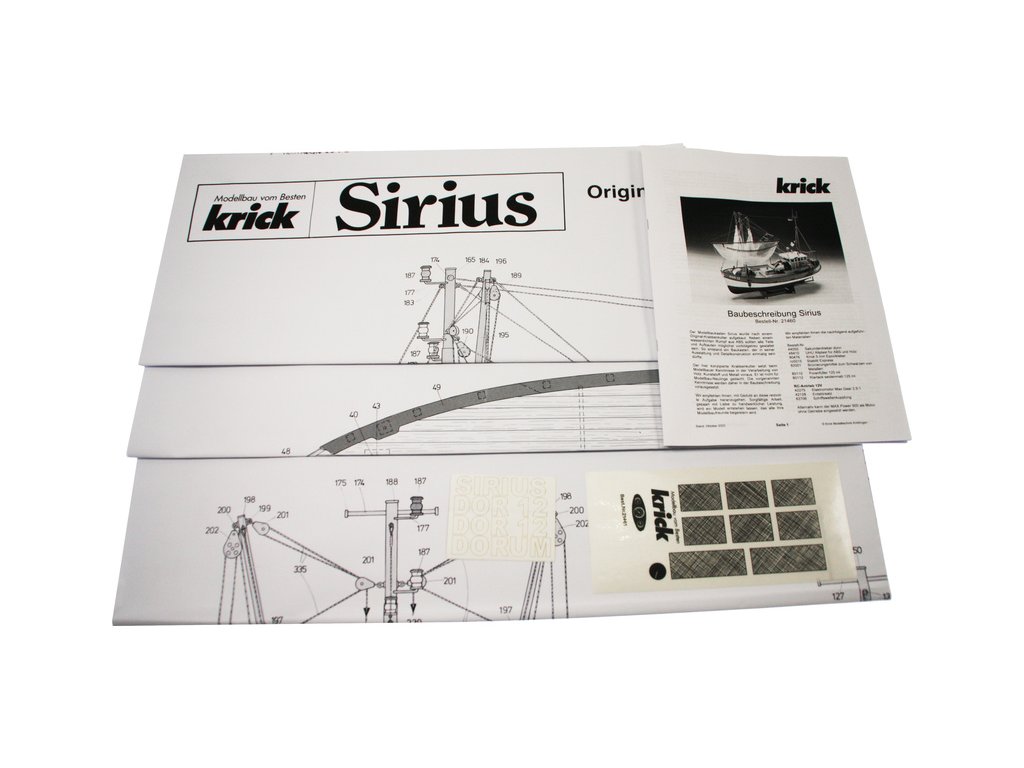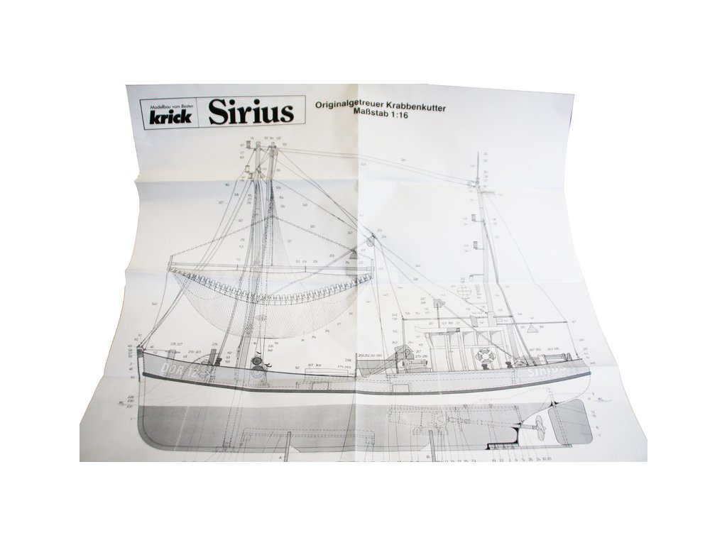Sirius je z modelové řady lodí Krick po mnoho let jednou z nejoblíbenějších stavebnic. Důvodem je dostupnost a přesné změření a zdokumentování velké lodi Sirius. K pohonu je doporučen elektromotor řady 900 nebo odpovídající střídavý motor.