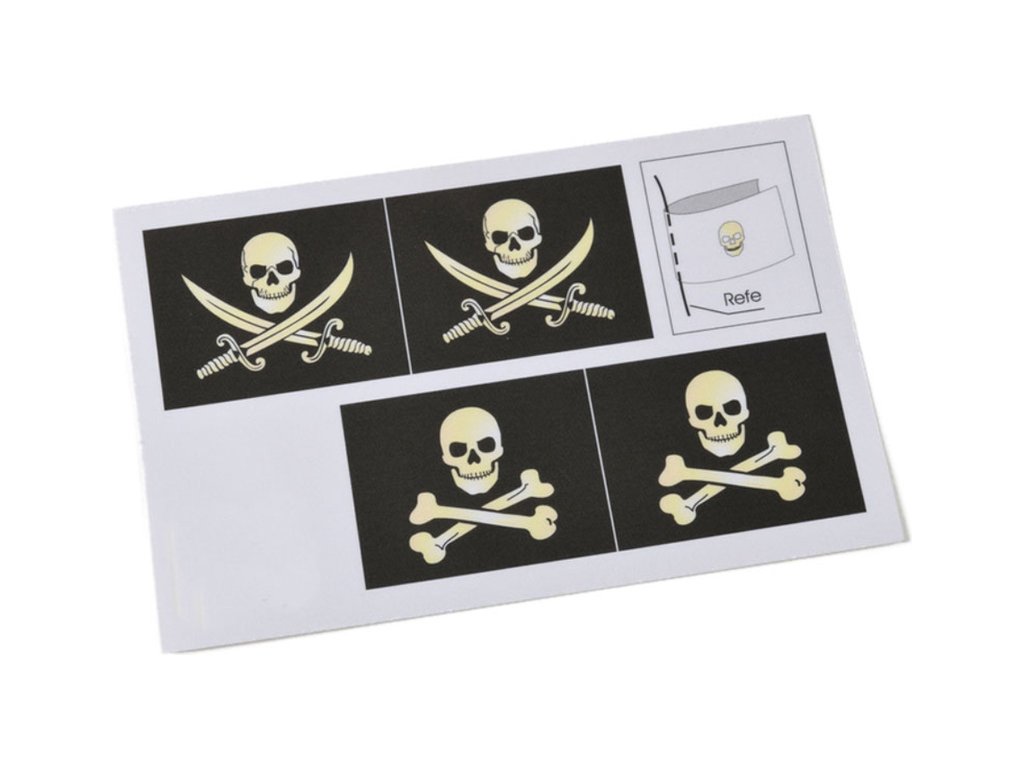 Pirátská vlajka natištěná na samolepící tkanině (2 ks). Rozměr vlajky je cca 55x43 mm.