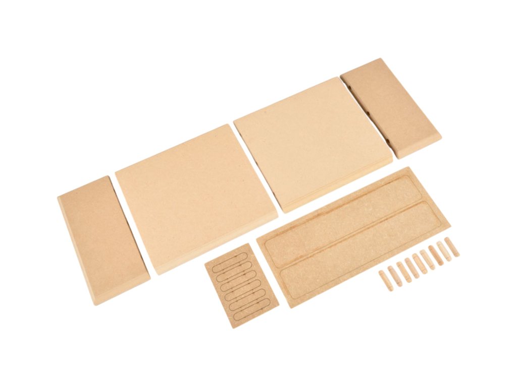 Krick Základní deska pro dekorativní stojany modelů lodí. Matriál MDF. Balení obsahuje základní desku a sadu různých podpěr. Rozměr 600x200x20 mm.
