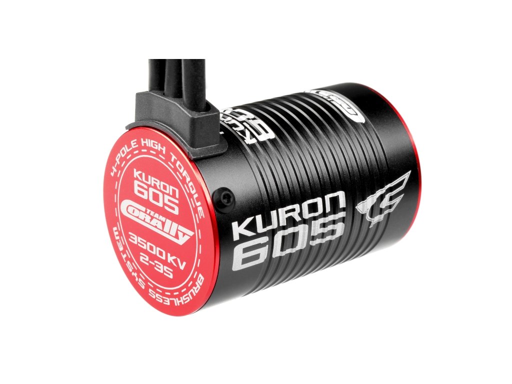 TEAM CORALLY KURON 605 střídavý motor bezsenzorový. Provozní napětí: 5-12,6V, délka samotného těla 52mm, průměr: 36mm, váha: 205g, otáčky na 1Volt: 3.500 o/min, hřídel 3,17mm, 4 polový, délka samotné hřídele 15mm.Doplňkové parametry