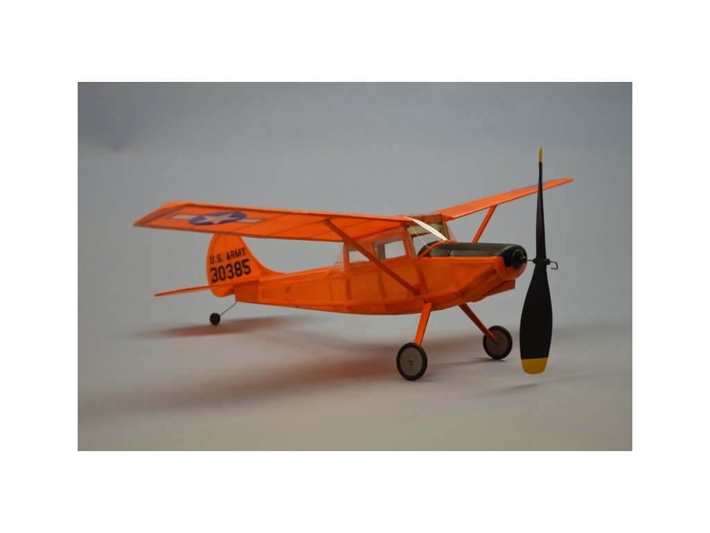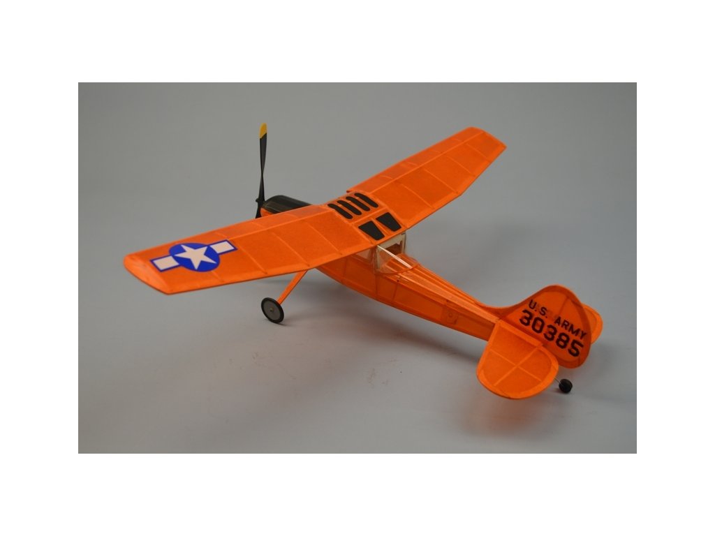 Stavebnice volně létající polomakety amerického průzkumného a spojovacího letadla určená pro pohon gumovým svazkem. Model je jednoduché klasické celobalsové konstrukce v rozsypu s laserem vyřezávanými dřevěnými díly, maketovými doplňky z vakuově tvářeného plastu a plastovými díly zhotovenými vstřikovým lisováním. Trup je konstruován běžnou minimaketářskou technologií - nejprve z balsových lišt sestavíte bočnice, které spojíte polopřepážkami a příčkami do příhradového rámu. Výsledné oblé tvary získáte po nalepení většího počtu tenkých podélníků. Křídla jsou klasické konstrukce z nosníků a žeber, ocasní plochy z balsových lišt a laserem vyřezávaných dílů.