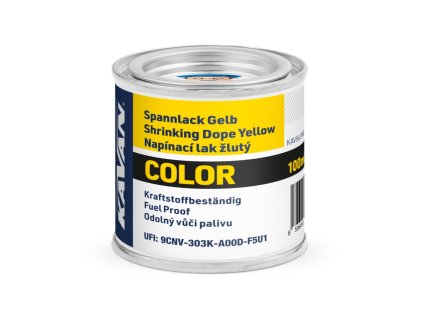 Žlutý napínací nitrolak pro napínání potahových papírů a pláten odolný vůči žhavícímu palivu i benzínu. Pro nanášení štětcem, válečkem nebo stříkáním. Balení plechovka 100 ml.