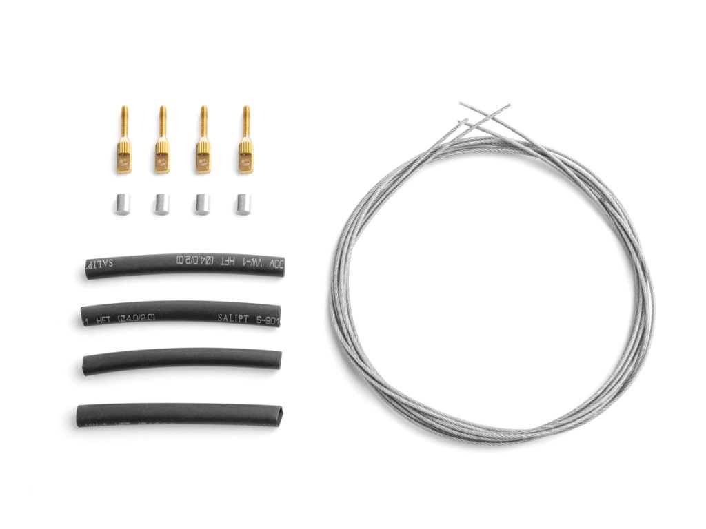 Set obsahuje 2x 1m Ocelového lanka o průměru 0,8mm, 4x M2 šroubovací koncovku, 4x Zálisek pro lanko, 4x Smšťovací bužírku.Doplňkové parametry