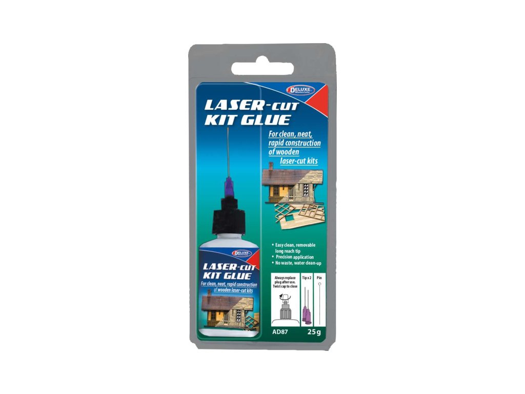Novinka pro rok 2020 - lepidlo Laser-Cut od Deluxe Materials je určeno pro snadné a efektivní lepení dřevěných a případně plastových stavebnic, které byly vypáleny laserem. Nanášení jehlovým aplikátorem! Obsah 25 ml.