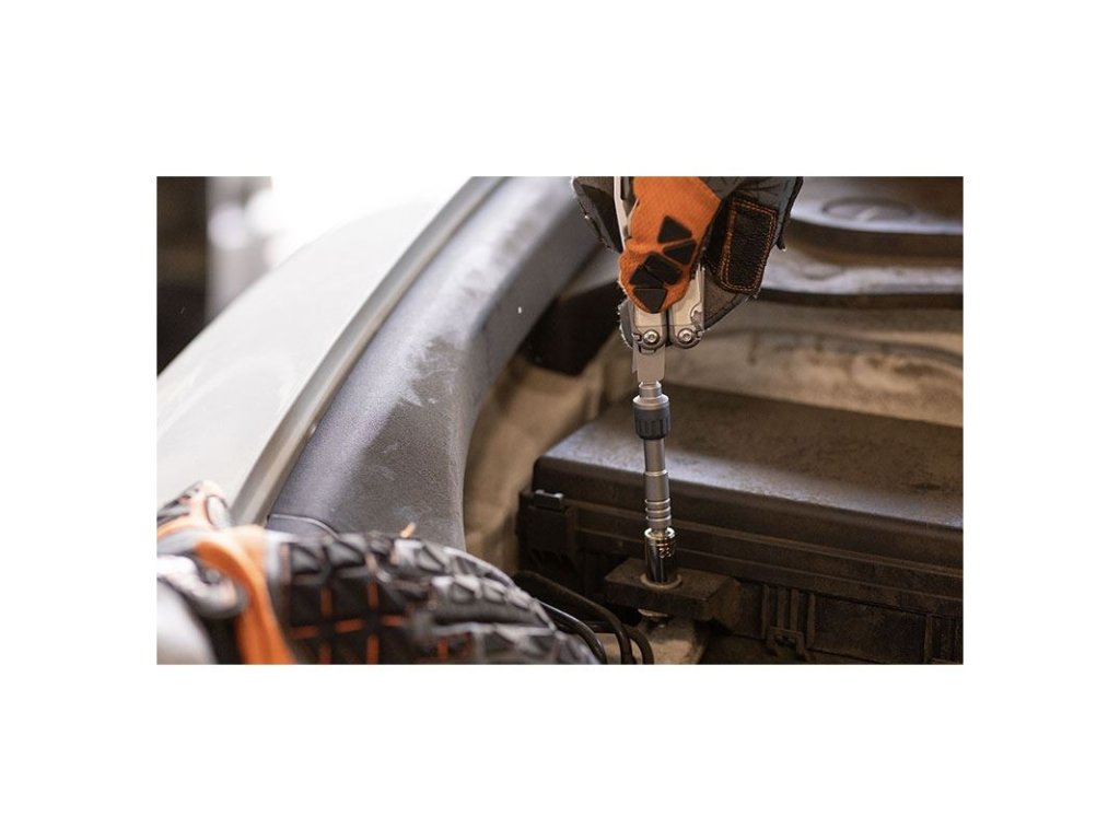 Ráčna vhodná pro práci s levostrannými i pravostrannými závity. Kompaktní systém umožňuje pohodlně pokračovat v rotačním pohybu / šroubování zatímco opačný směr je zablokován a nedochází k nežádoucímu povolování závitu. Třetí poloha ráčnu uzamyká a ta pak funguje jako klasický pevný nástavec na bity.