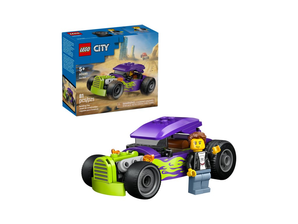 Malí milovníci závodních aut od 5 let můžou vyrazit se na superrychlé závody s autíčkem LEGO® City Hot rod (60485). Tato stavebnice auta nadchne malé stavitele díky propracovaným závodním prvkům, včetně obrovských zadních pneumatik, kokpitu řidičese zvedací střechou a parádnímu fialovému barevnému provedení s neonově zelenými plameny. Stačí přidat minifigurku řidiče a můžete odstartovat superrychlou jízdu!