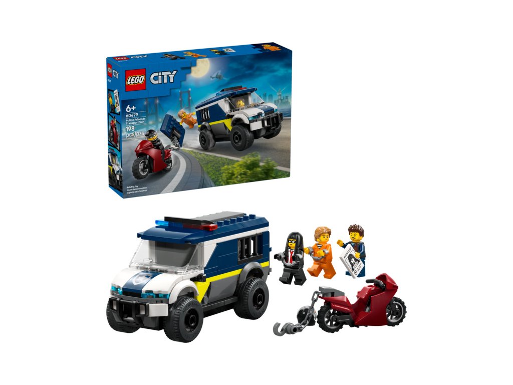 Připravte se na napínavá dobrodružství se stavebnicí LEGO® City Policejní dodávka pro převoz vězňů (60479) pro děti od 6 let. Model policejního vozu má propracovanou kabinu řidiče a vězeňskou celu s prostorem pro 2 zločince. Děti můžou pomocí hračky v podobě motocyklu s řetězem a hákem vytrhnout dveře cely. Stačí přidat minifigurku policisty a 2 minifigurky zločinců a můžete si přehrát na napínavou scénu s útěkem z vězení.