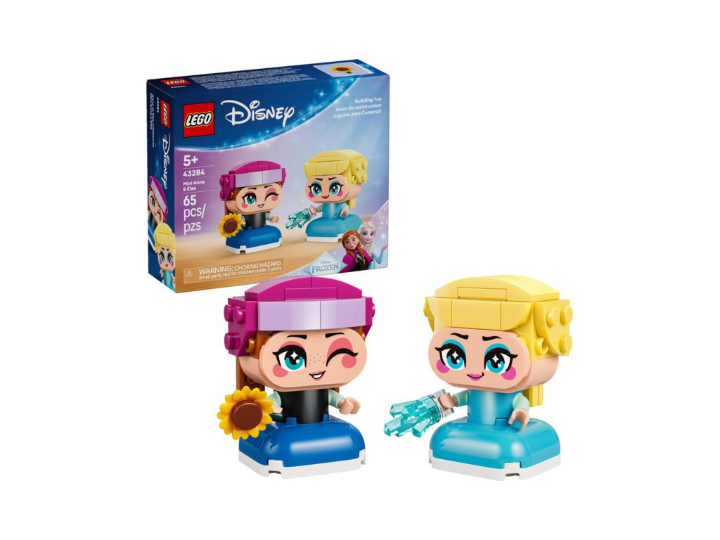 Potěšte děti od 5 let stavebnicí LEGO® ǀ Disney Ledové království Mini Anna a Elsa(43284). Postavičky Elsa a Anna jsou navrženy tak, aby inspirovaly k vyprávění příběhů a živé hře, a součástí jsou také doplňky v podobě ledového blesku a slunečnice. Každá postava má pohyblivé ruce a může držet doplněk. Skvěle se hodí na vystavení a jsou součástí sběratelské série, která obsahuje další Disney princezny postavené z kostek.