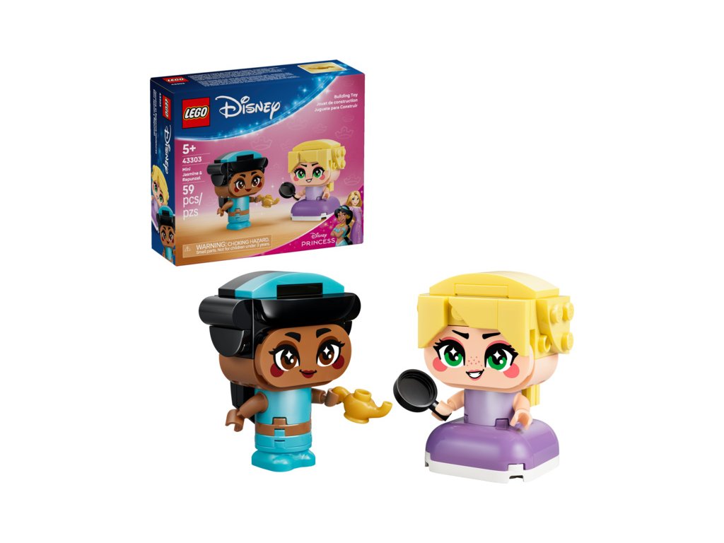 Potěšte děti od 5 let stavebnicí LEGO® ǀ Disney Princess Mini Jasmína a Locika (43303). Filmové postavy Jasmína a Locika s doplňky v podobě kouzelné lampy a pánve inspirují děti k vymýšlení příběhů a živé hře. Každá z princezen má pohyblivé ruce a může držet svůj doplněk. Modely princezen se také skvěle se hodí na vystavení v pokojíčku a jsou součástí sběratelské série, která obsahuje další princezny Disney z kostek.