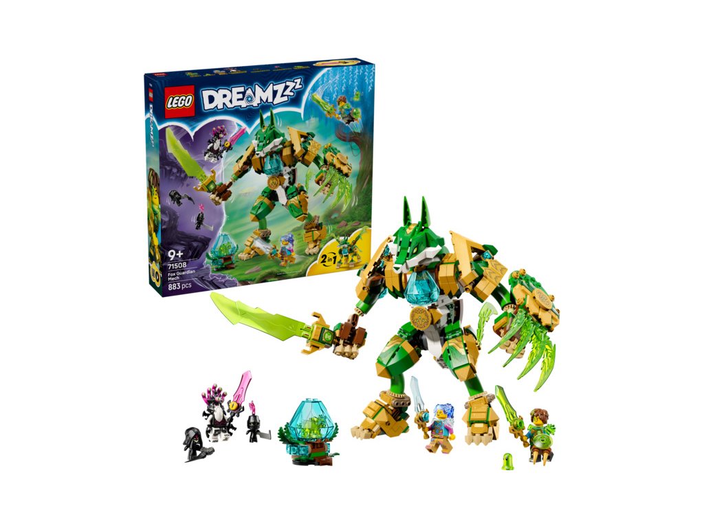 Stavebnice LEGO® DREAMZzz™ Liščí robotický strážce (71508) pro kluky a holky od 9 let, která obsahuje fantastickou robotickou hračku se 2 možnostmi sestavení, posune hranice dětské představivosti. Malí snílci si užijí spoustu zábavy při skládání hračky v podobě mocného liščího válečníka, který stojí na 2 nohách a je vybaven mečem a štítem, nebo majestátního liščího strážce se 4 nohama a křídly.