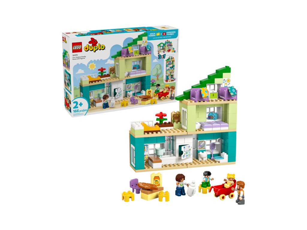Batolata od 2 let si užijí kreativní hraní na scény z rodinného života díky stavebnici Moderní rodinný dům 3 v 1 s figurkami (10470). Součástí této interaktivní hračky rodinného domku jsou 4 figurky – 2 rodiče, batole a miminko –, díky kterým děti při hraní na rodinku rozvinou své sociální a emoční dovednosti.