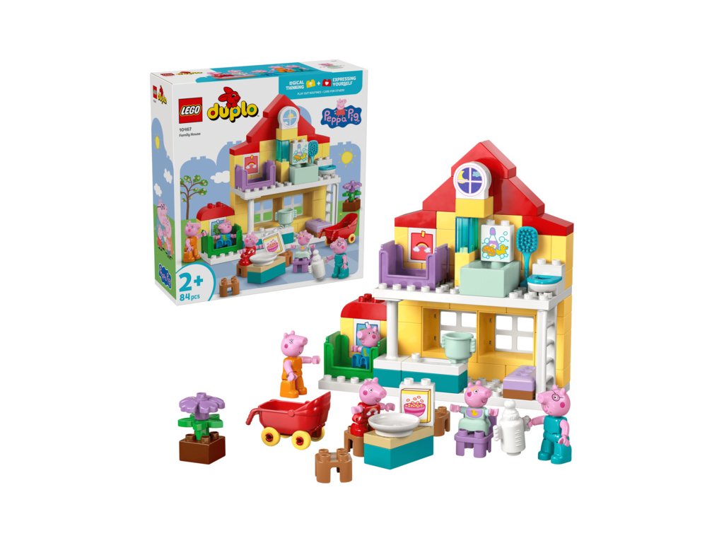 S touto hračkou na hraní rolí si malé děti připomenou scény ze seriálu a zahrají na každodenní situace známé z vlastního domova, jako je uspávání nebo rodinná snídaně. Stavebnice obsahuje 5 figurek LEGO DUPLO – maminku, tatínka, Toma, Evie a Peppu – a pomáhá dětem rozvíjet emoční inteligenci při hraní na to, že mají nového člena rodiny.