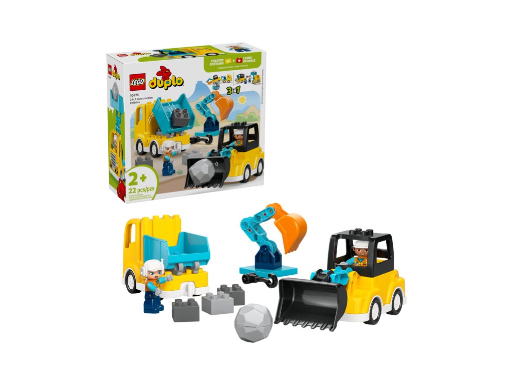 - STAVEBNICE PRO BATOLATA – Probuďte v malých dětech kreativitu se stavebnicí LEGO® DUPLO® Město Vozidla na stavbě 3 v 1 (10475), ve které najdou 22 kostek, z nichž lze sestavit hned 6 různých modelů vozidel