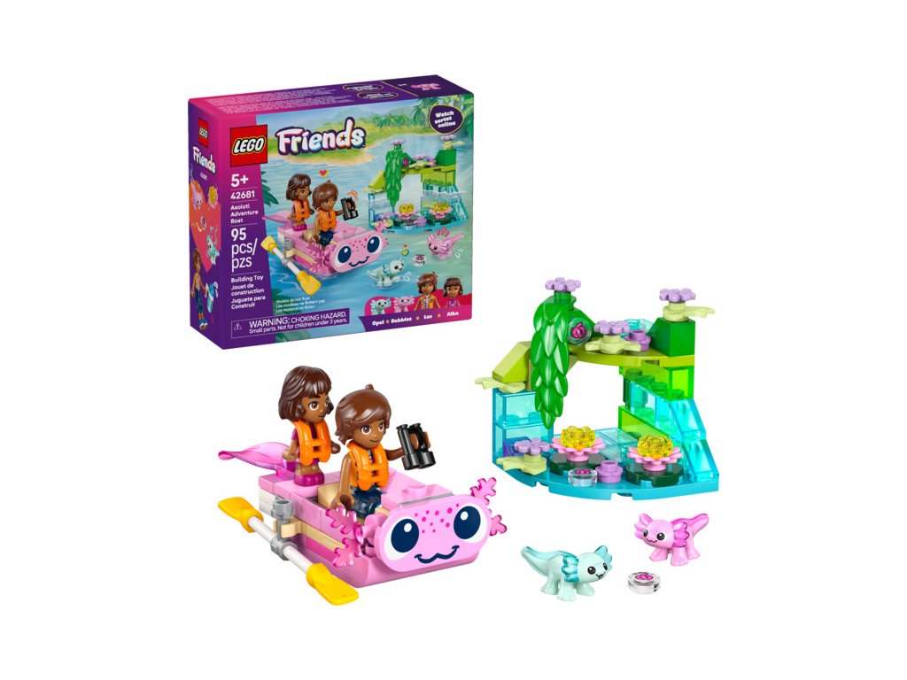- STAVEBNICE S AXOLOTLY – Tato dětská stavebnice LEGO® Friends Dobrodružný člun s axolotly (42681) obsahuje mini člun, 2 postavičky a 2 mini axolotly, se kterými si děti od 5 let zaručeně užijí spoustu zábavy