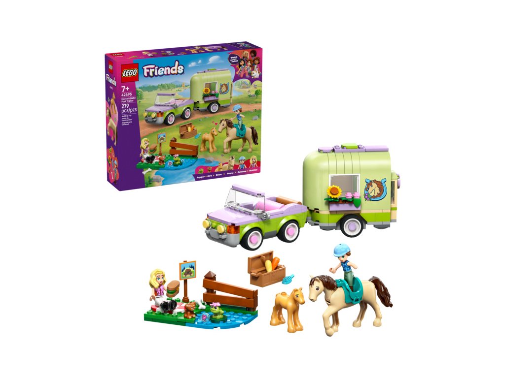 Děti od 7 let si se stavebnicí LEGO® Friends Přívěs s koněm a hříbětem (42695) užijí hodiny hraní na péči o zvířata. Tato stavebnice pro milovníky koní obsahuje 2 minipanenky a figurku koně, hříběte, štěněte a žáby. Vyzkoušejte si péči o zvířata s pomocí propracovaných doplňků pro hřebelcování koní, přepravu v přívěsu a skákání přes překážky.