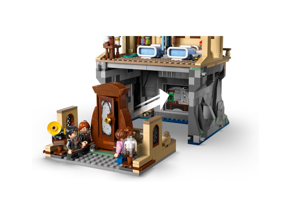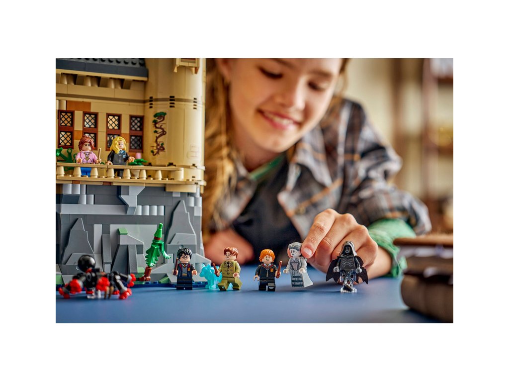 Tato stavebnice s Bradavickým hradem obsahuje 7 minifigurek LEGO Harry Potter, včetně mozkomora Harryho Pottera. Součástí je také model pavouka Rona Weasleyho a patrona Remuse Lupina v podobě vlka ze série sběratelských patronů k 25. výročí (prodávají se samostatně). Odejměte učebnu obrany proti černé magii ze skalnatých základů pro snadnější přístup dovnitř a objevte 2 ze 14 sběratelských bradavických portrétů.