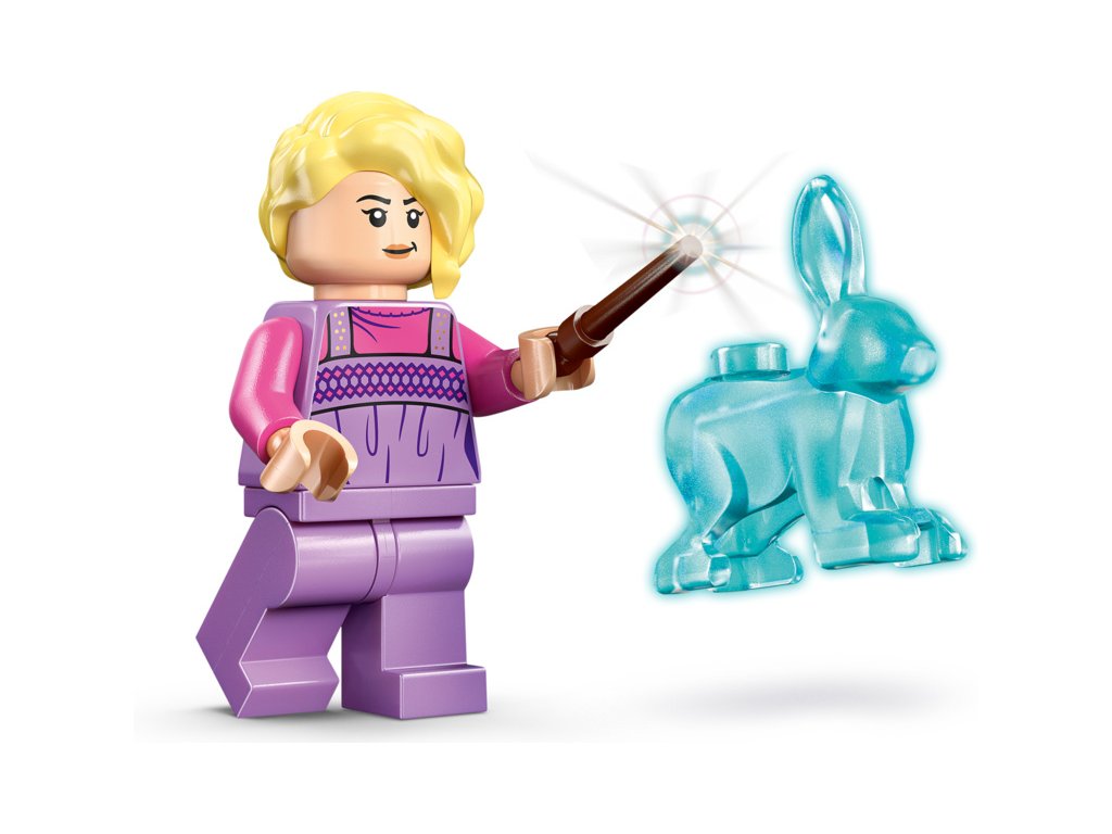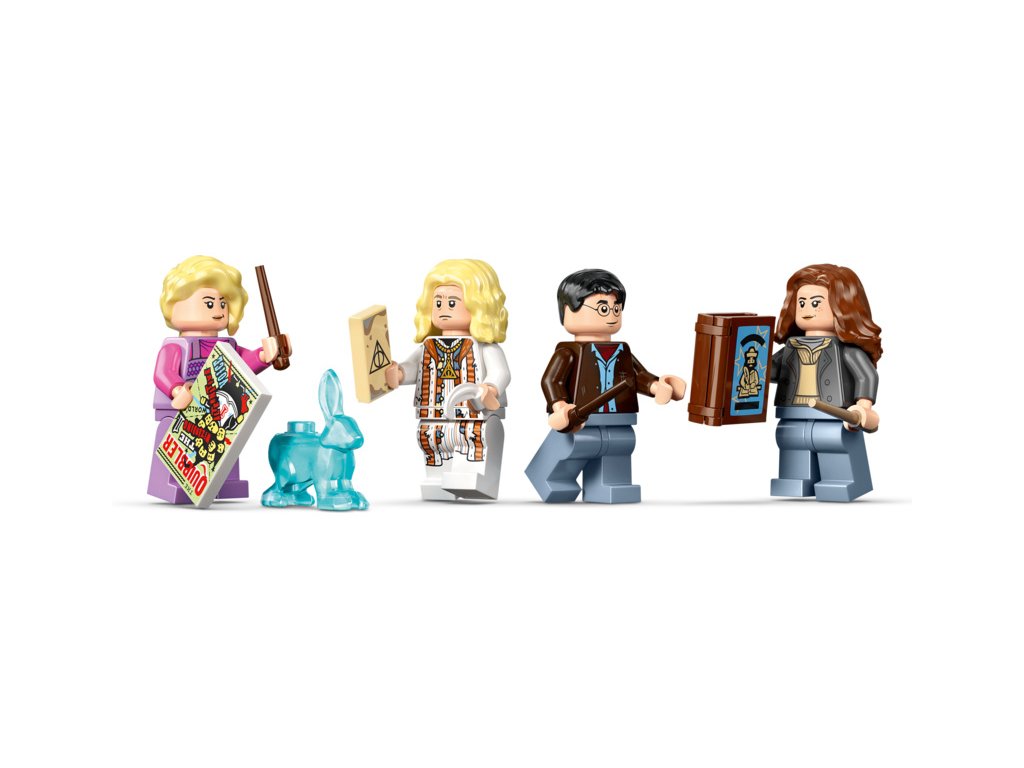 - 5 MINIFIGUREK LEGO® HARRY POTTER™ – Lenka Láskorádová, Xenophilius Láskorád, Harry Potter, Hermiona Grangerová, Smrtijed, každý s hůlkou, a sběratelský patron v podobě zajíce k 25. výročí