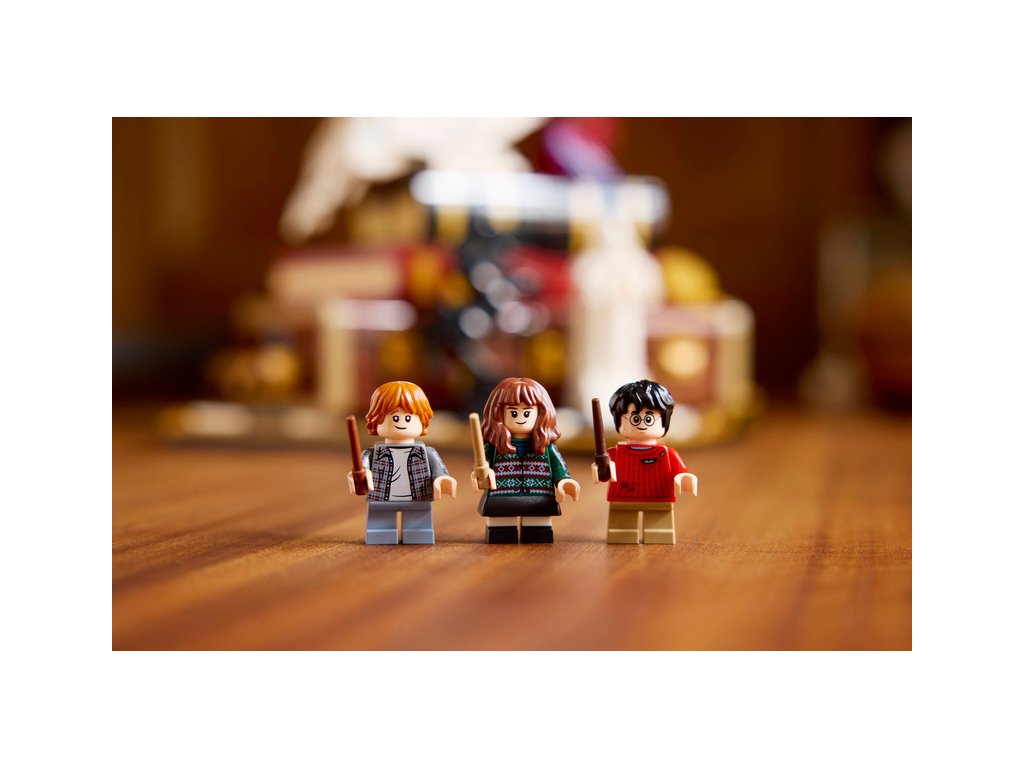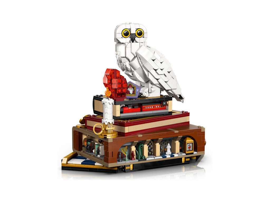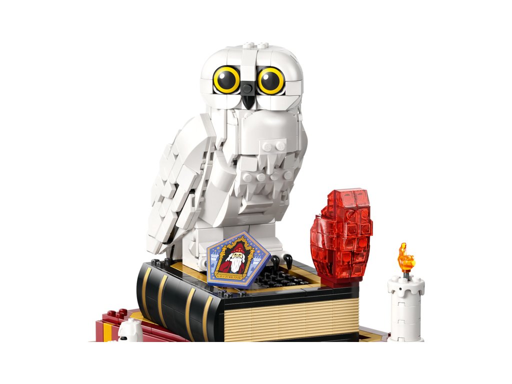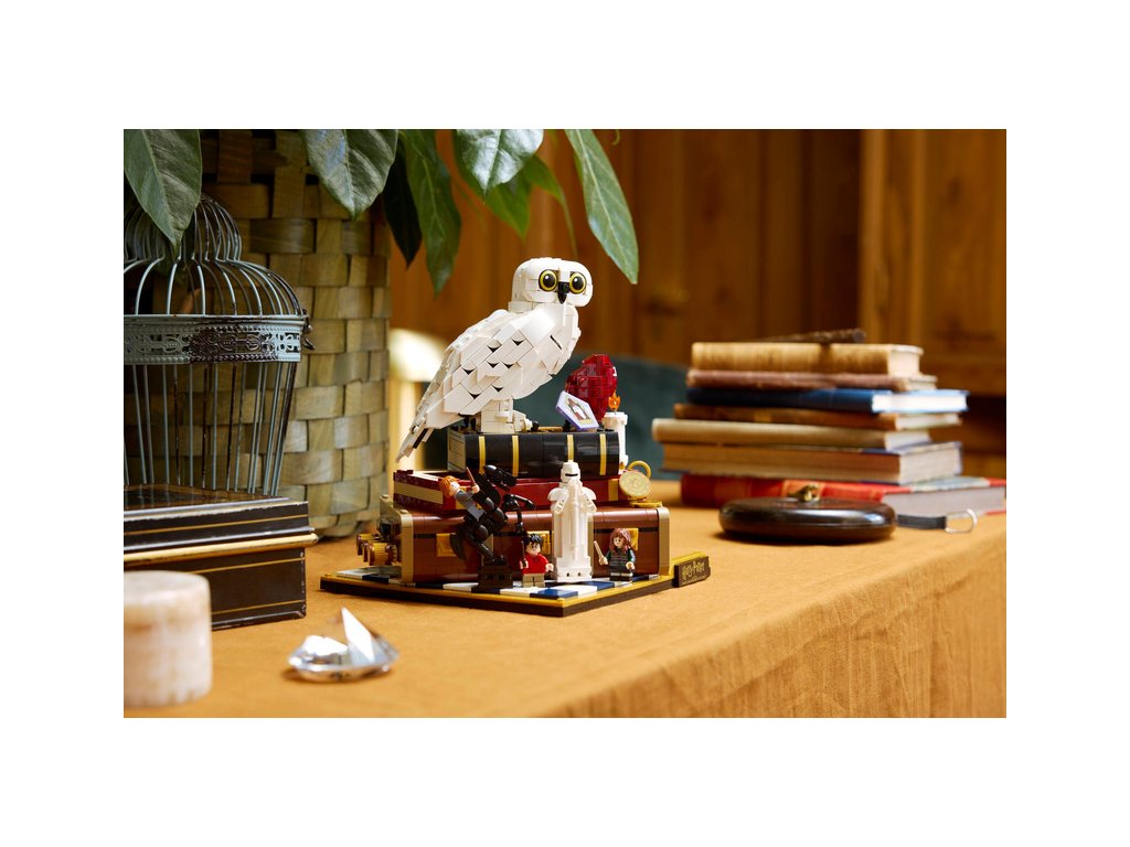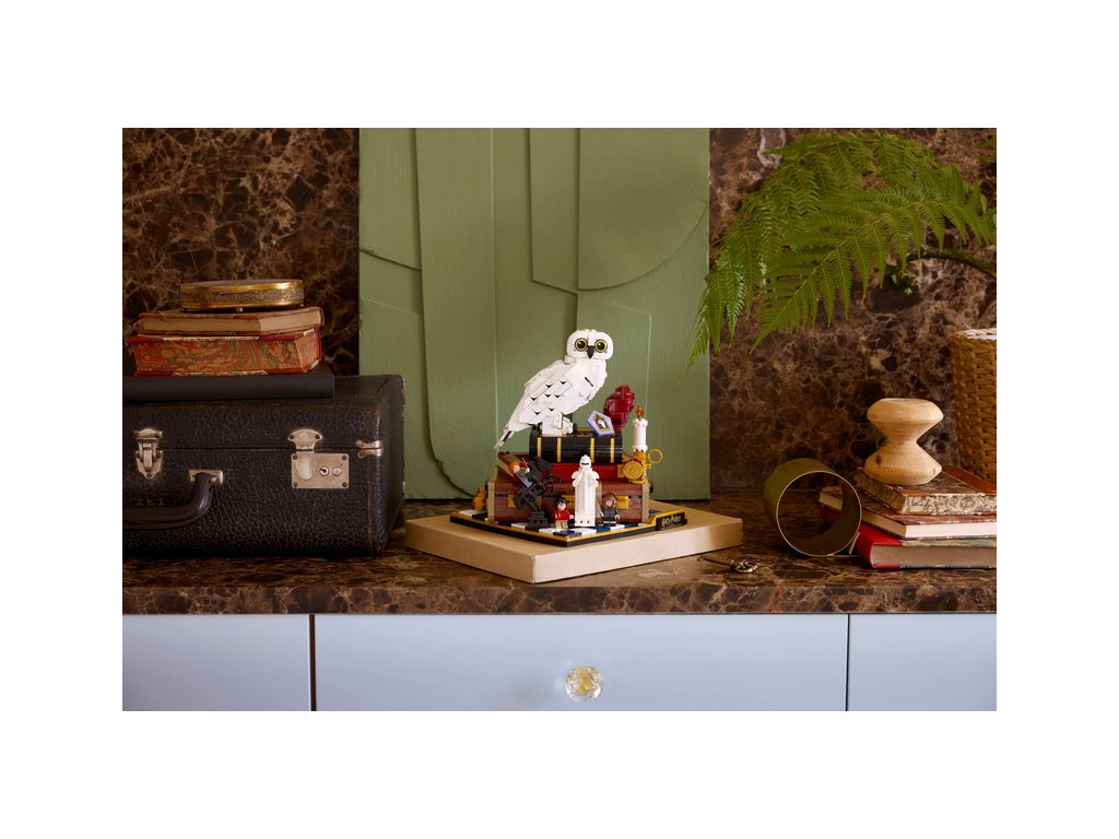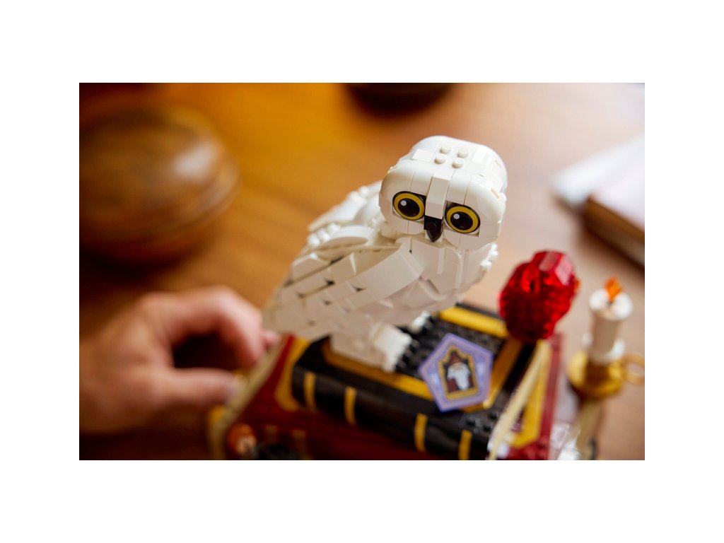 Postavte si první figurku LEGO Hedviky, sovice sněžné se složenými křídly, a vystavte si ji vedle kamene mudrců a na kufříku Harryho Pottera. Přidejte tři minifigurky LEGO Harry Potter – Harryho Pottera, Hermionu Grangerovou a Rona Weasleyho – a řadu předmětů, mezi které patří čokoládová žabka a kouzelnické šachy.