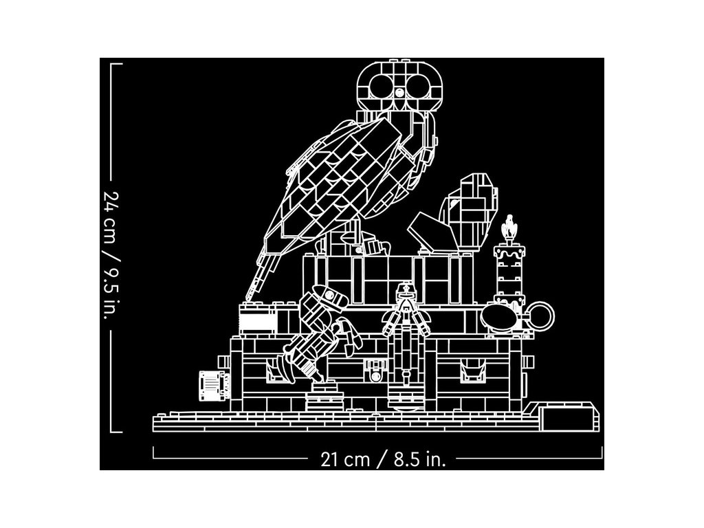 - ROZMĚRY – Tato stavebnice LEGO® Harry Potter™ se skládá z 1 571 dílků a měří přes 24 cm na výšku, 29 cm na šířku a 21 cm do hloubky a fanoušci Harryho Pottera si tuto soví dekoraci přímo zamilují
