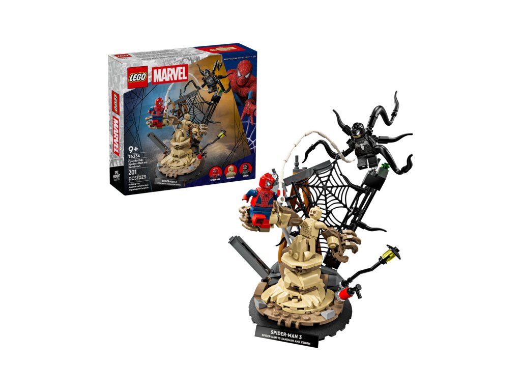 Připomeňte si akční scény z filmu Spider-Man 3 od studia Marvel se stavebnicí LEGO® ǀ Marvel (76334) Epický souboj: Spider-Man vs. Sandman pro holky a kluky od 9 let. Obsahuje 3 minifigurky ikonických postav – Spider-Mana, Venoma a Sandmana – které si můžete vystavit nebo se s nimi vydat na epická dobrodružství.