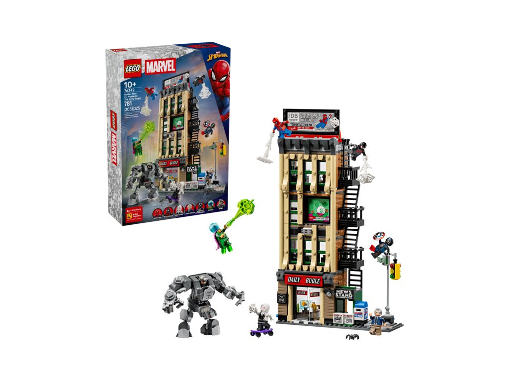- STAVEBNICE DAILY BUGLE – Prozkoumejte stavebnici LEGO® ǀ Marvel (76342) Spider-Man vs. Mysterio: Daily Bugle, čtyřpatrovou budovu plnou minifigurek LEGO® ǀ Marvel a akčních superhrdinů