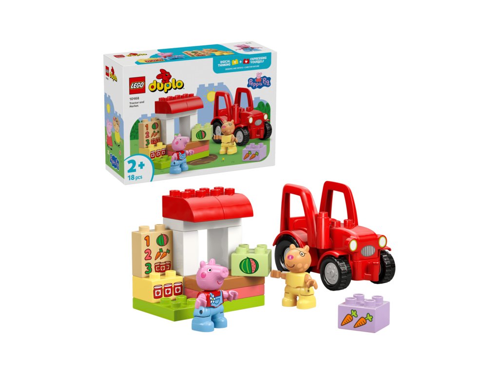 - HRAČKA PRASÁTKO PEPPA – Batolata od 2 let si se stavebnicí LEGO® DUPLO® Prasátko Peppa Traktor a tržnice (10468) můžou připomenout scény ze svého oblíbeného seriálu a hrát na provozování farmářského obchodu