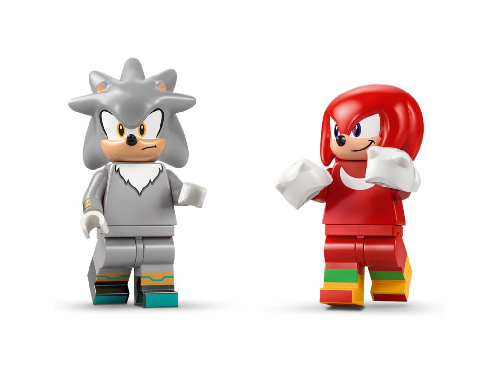 - SILVER THE HEDGEHOG, KNUCKLES A DALŠÍ – Stavebnice obsahuje vůbec první minifigurku LEGO® Silvera, minifigurku Knucklese, bednu s nářadím, startovací světla a červené a bílé Smaragdy chaosu