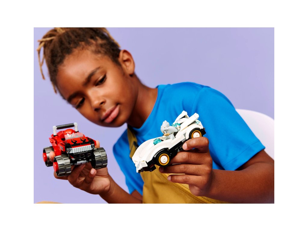 - ZÁVODNÍ HRAČKA SONIC THE HEDGEHOG™ – Děti a gameři od 8 let se pustí do závodění se 2 vozidly a užijí si rychlou akční hru s touto stavebnicí, která obsahuje minifigurky Silvera a Knucklese