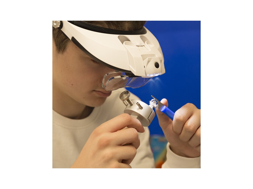 Lightcraft čelenka s lupou a LED osvětlením vám pomůže při detailní práci, když potřebujete mít volné ruce. Pružná čelenka je na každou velikost hlavy, v balení je 5 velikostí výměnných objektivů s ohniskovou vzdáleností od 60 mm do 350 mm. Zvětšení 1x až 6x. Možnost zdvojení objektivů.