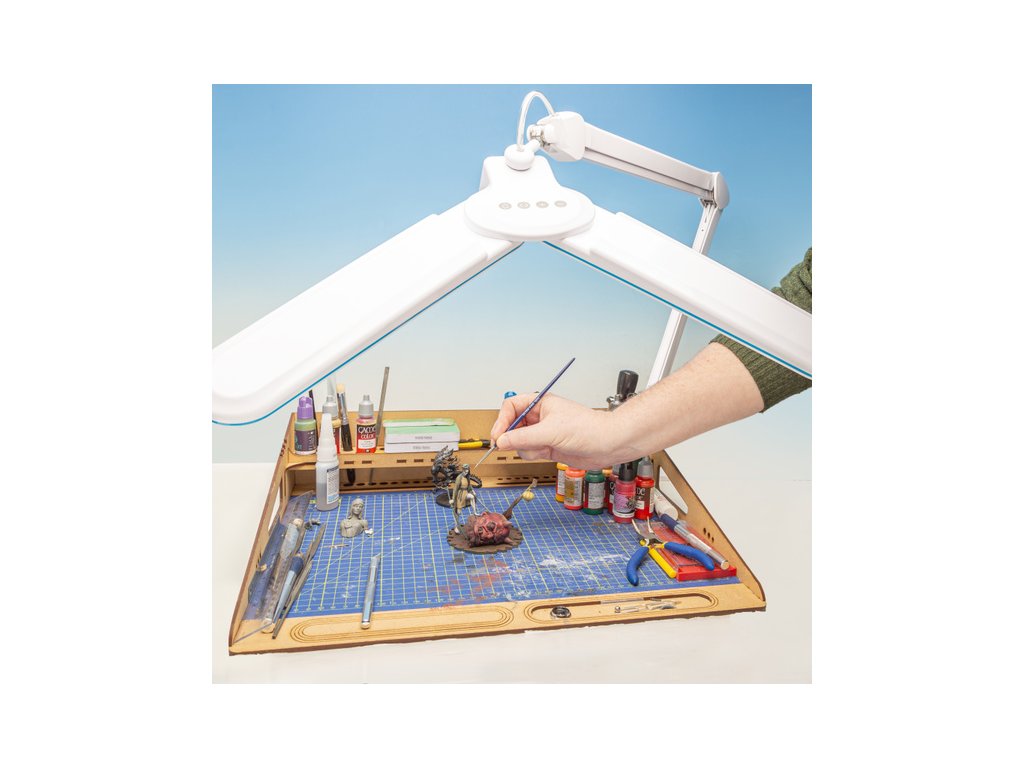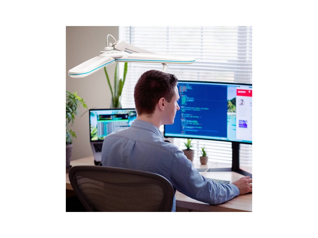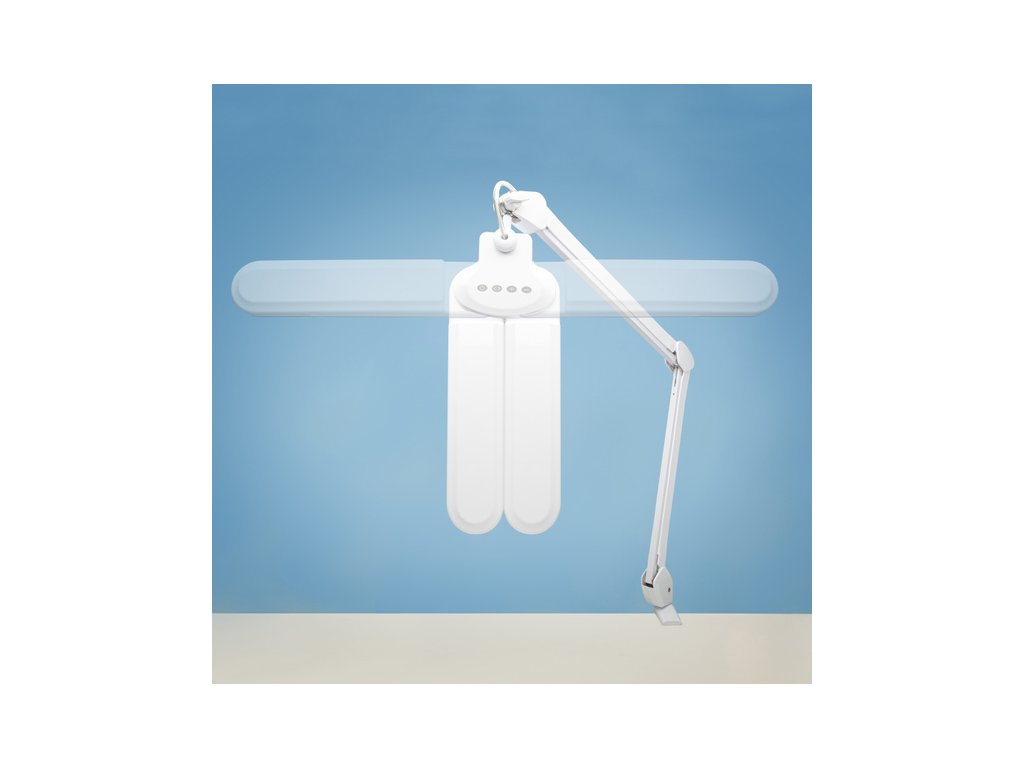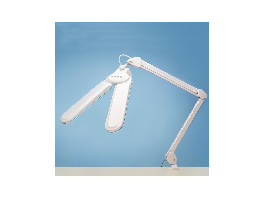 Profesionální stolní lampa Lightcraft 23W se dvěma nastavitelnými hlavami s maximální šířkou 72 cm, umožňuje jak přesné tak bodové nasvícení. Nabízí i díky flexibilnímu kloubovému ramenu s dlouhým dosahem silné osvětlení přesně tam, kde ho potřebujete. Duální stmívač nabízí možnost nastavit barevnou teplotu i jas. Tuto univerzální lampa lze použít v dílně, kanceláři i domácnosti. 140 SMD LED (23W) poskytuje intenzivní osvětlení. S teplotou chromatičnosti 3000 – 6500K vytvoříte ideální prostředí pro práci nebo odpočinek. Standardní podání barev - 80 CRI. Napájení ze sítě 230V, přiloženým napájecím zdrojem DC 24V 1A.