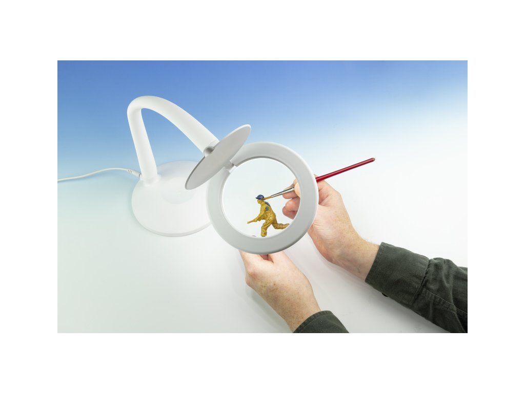 Lightcraft LED lampa s připojením do USB, lupou, flexibilním ramenem stojanu a stabilním podstavcem je určena pro detailní práci. Celkem tři možnosti intenzity osvětlení: měkké světlo 3000 K (200 lumenů), jasné světlo 4000 K (320 lumenů) a denní světlo: 6100 K (220 lumenů). 24 LED diod poskytuje měkké bílé až denní světlo, které snižuje odlesky a pomáhá snížit únavu očí či bolesti hlavy. Energeticky efektivní, pouze 8 W. Kvalitní skleněná čočka velikosti 100 mm, zvětšení 1,75x. Ideální pro čtení, řemeslo a hobby použití.