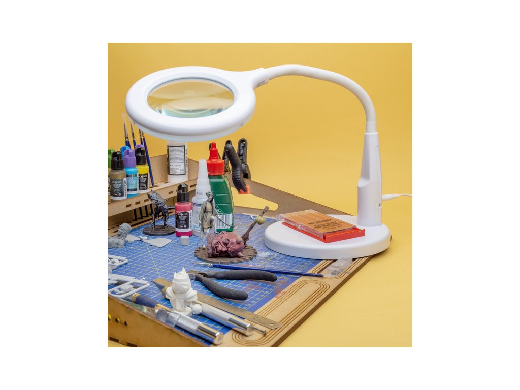 Lightcraft stolní LED lampa ohebná s napájením přes USB, s lupou, flexibilním ramenem a stabilním podstavcem je určena pro detailní práci. Barevná teplota 6500K. 36 LED diod, kvalitní skleněná čočka 100 mm, zvětšení 1,75x 3 dioptrie. Délka USB kabelu 1,2m, ideální pro hobby a řemesla.