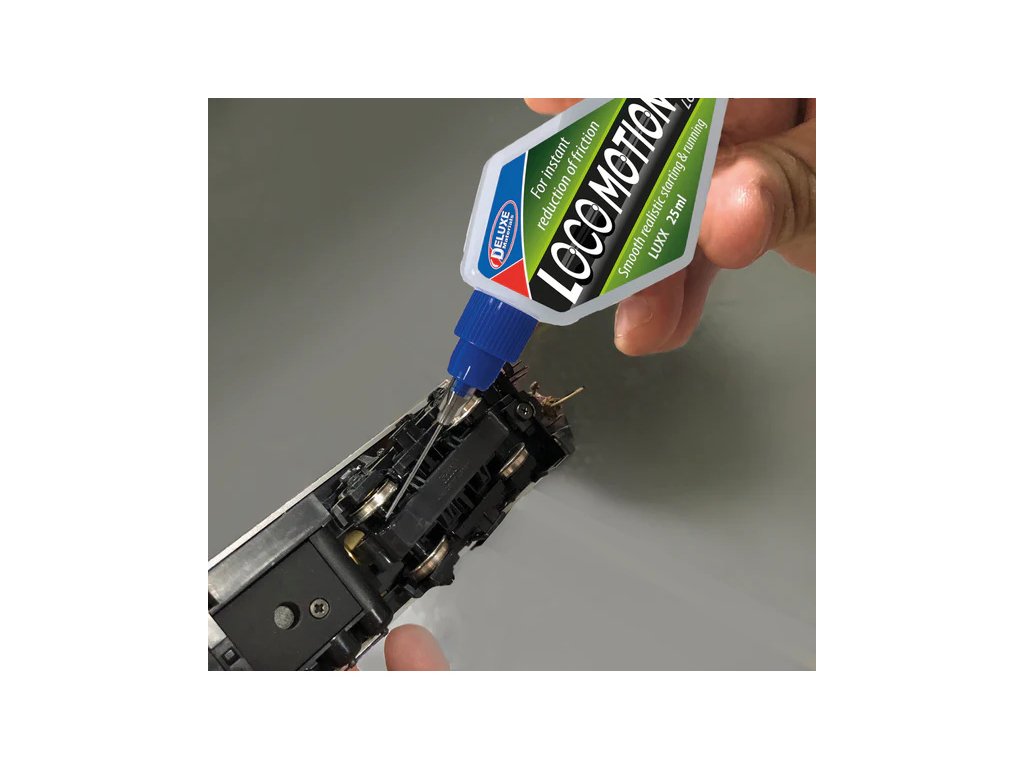 Loco Motion je mazací olej pro modely vláčků a jiné aplikace jako je mazaní drobných strojků apod. Olej minimalizuje tření, nenapadá kovy a modelářské plasty, včetně nylonových převodů, vysoce vzlínavý, má konzervační účineky - chrání před korozí.