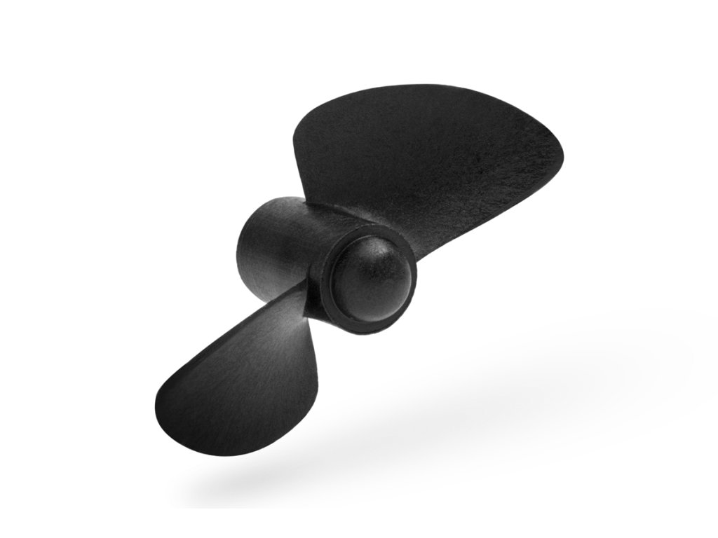 Dvoulistý levotočivý lodní šroub 45mm pro montáž pod loď, stoupání 15 stupňů, plast plněný skelnými vlákny, závit M4.Doplňkové parametry