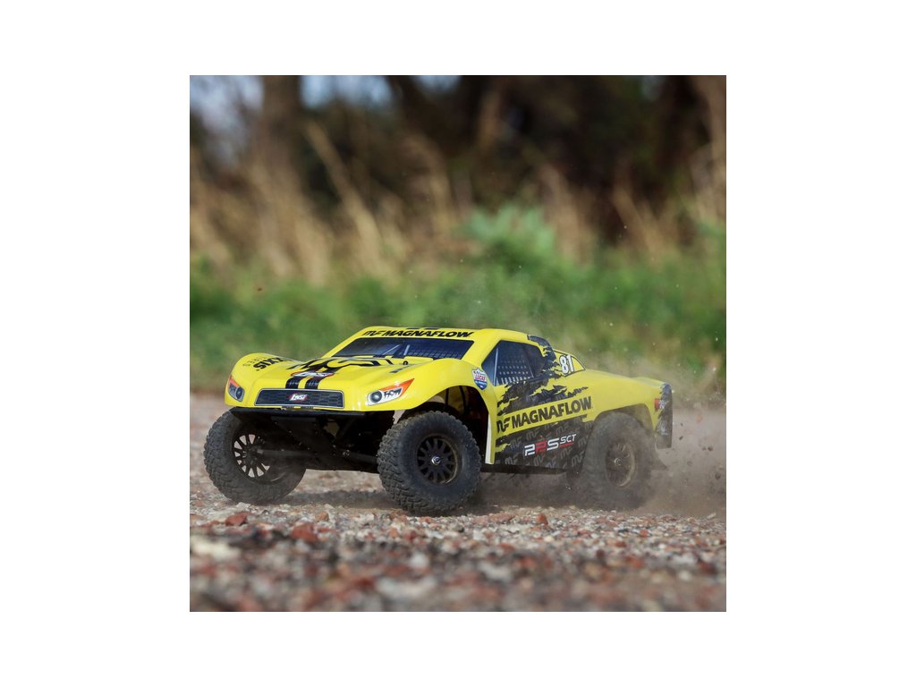 Modely aut Losi 22S SCT mají licencované karosérie s elegantní grafikou ve dvou různých oficiálně licencovaných provedeních, Magnaflow a Kicker Audio.