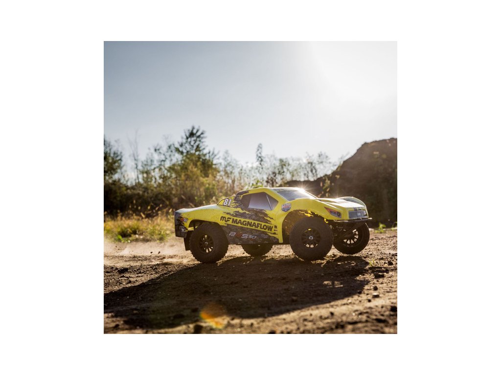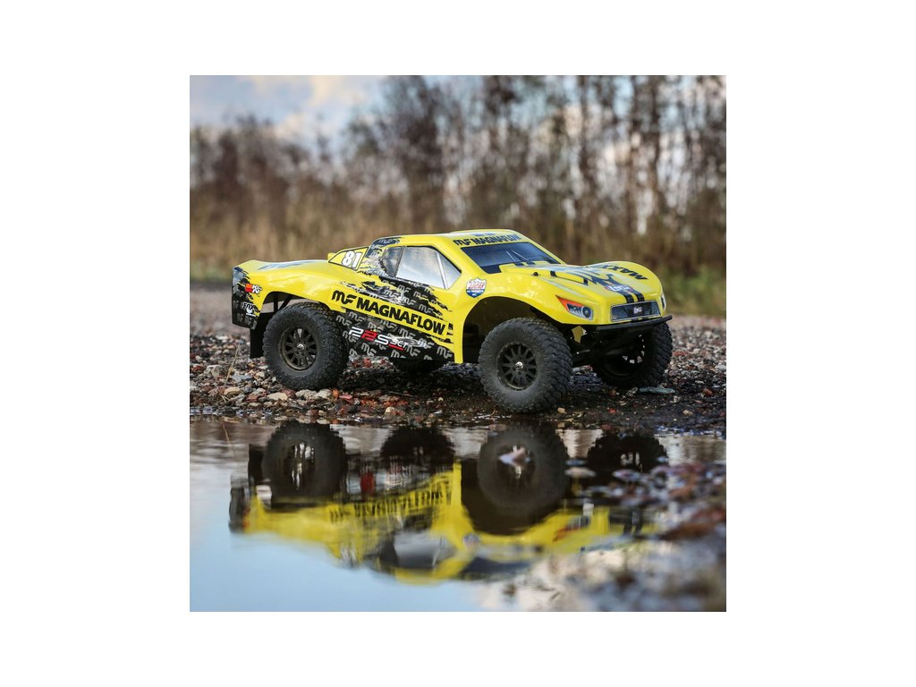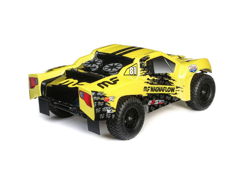 Modely aut Losi 22S SCT mají licencované karosérie s elegantní grafikou ve dvou různých oficiálně licencovaných provedeních, Magnaflow a Kicker Audio.