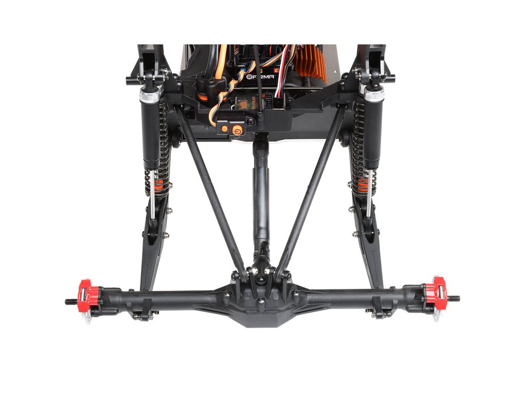 Zadní odpružení RC modelu Hammer Rey, umožňuje absorbovat během jízdy masivní nerovnosti a hrboly stejně realisticky, jako u plnohodnotného terénního závodního vozu U4. Skříň zadní nápravy obsahuje třetí díl, který má nová ložiska pastorku s větším průměrem a také pevnější horní uložení zadního ramene pro větší odolnost.