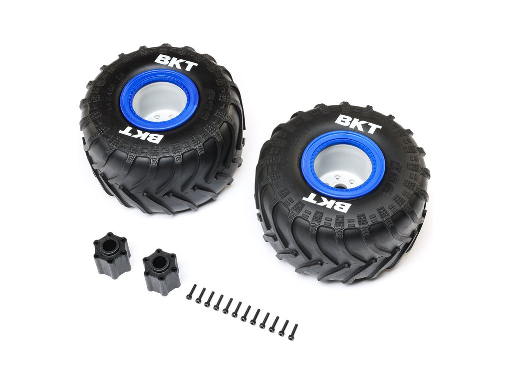 Losi kolo 2.6" s pneu BKT Monster Truck Tire, střední vložka, beadlock modrý (2): LMT 2.0