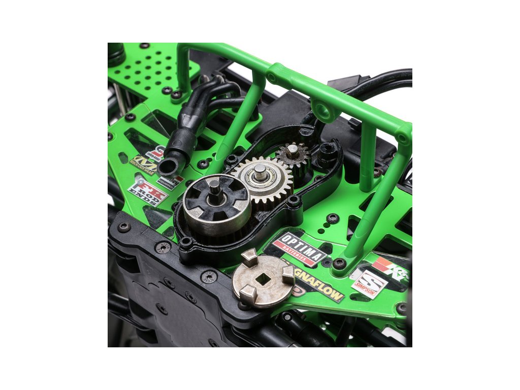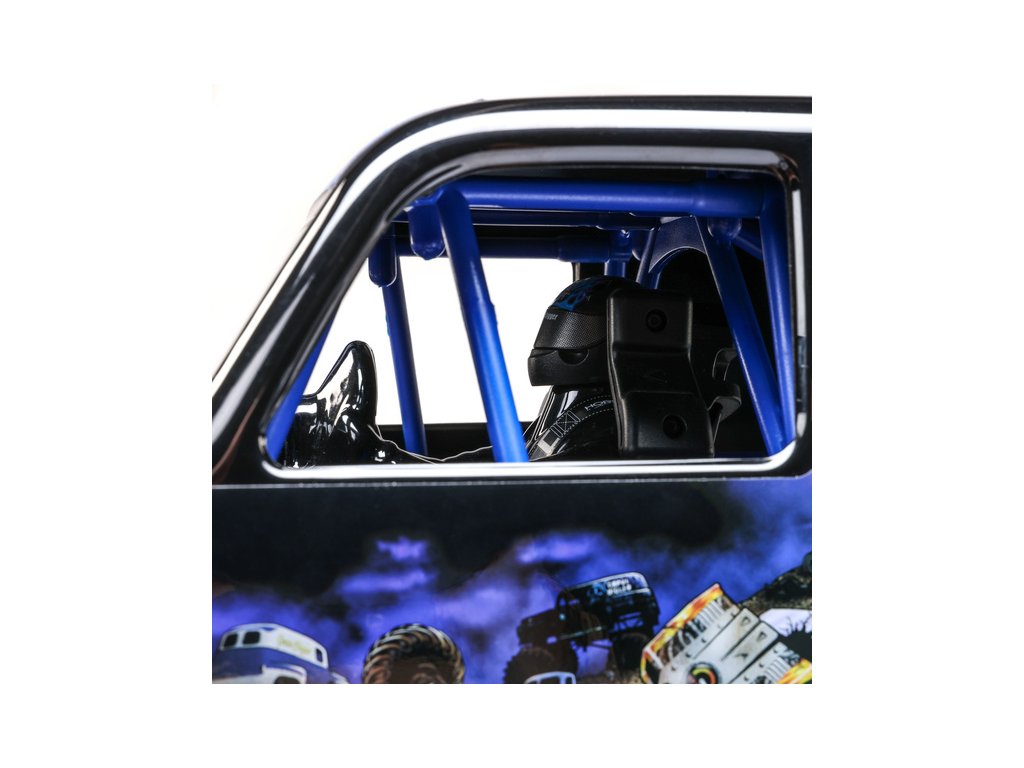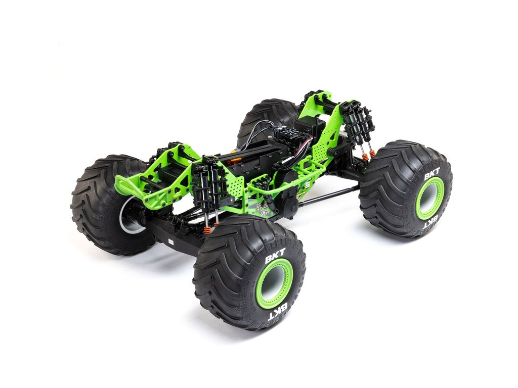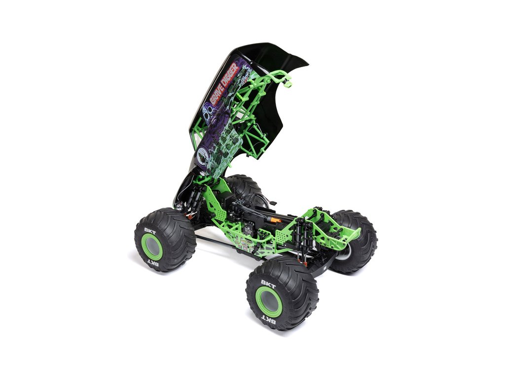 S 2,6" disky s větším odsazením a mírně vyššími pneumatikami vypadá Losi LMT 2.0 mnohem dominantněji než jeho předchůdce. Maketové kroužky disků lze odstranit nebo nabarvit, aby váš monster truck získal vlastní unikátní vzhled. Oficiálně licencované pneumatiky BKT obsahují méně agresivní vzor běhounu, který zlepšuje ovladatelnost na širokém spektru povrchů. Pro lepší přístup k akumulátoru se klec s karoserií odklápí dopředu a je zajištěna bezsponkovým systémem s otočným zámkem. Mezi další vzrušující detaily karoserie patří, kromě licencovaného designu Monster Jam™ a Feld Motorsports, také LED světlomety, rámová klec a figurka řidiče.