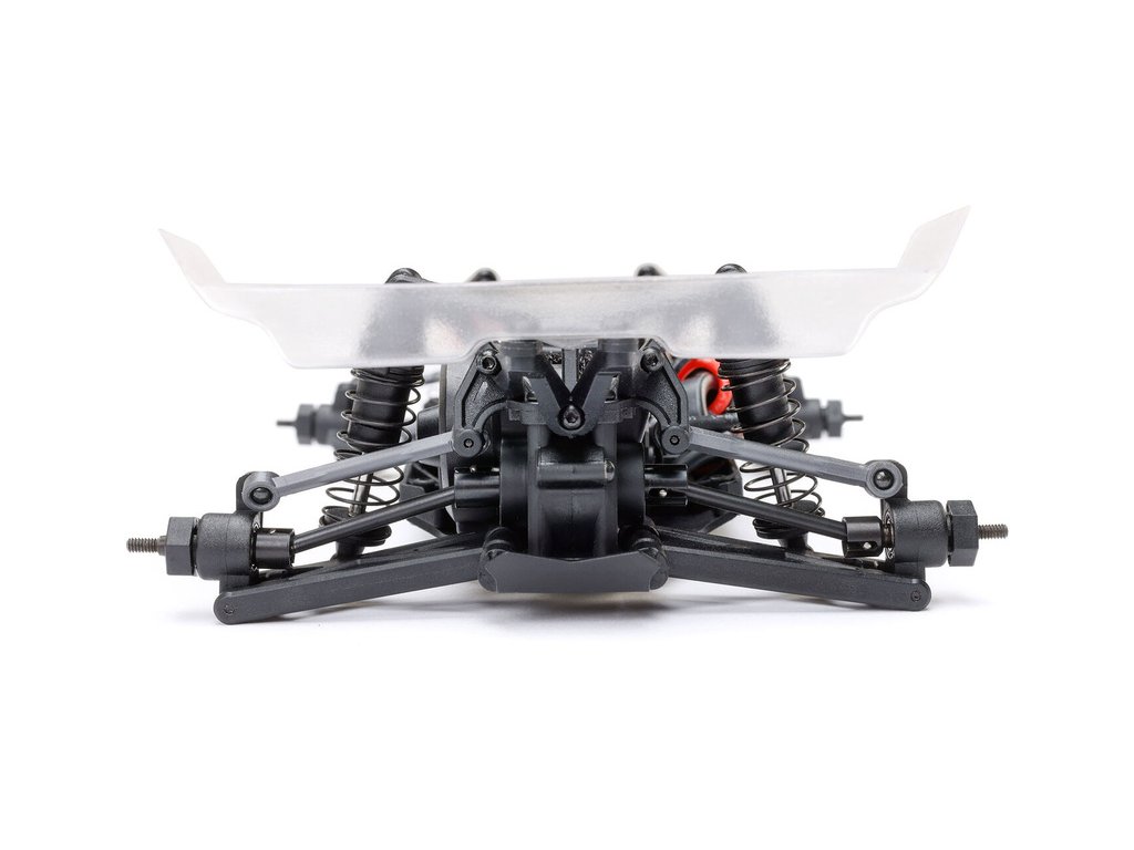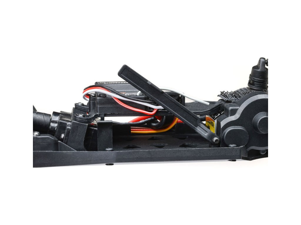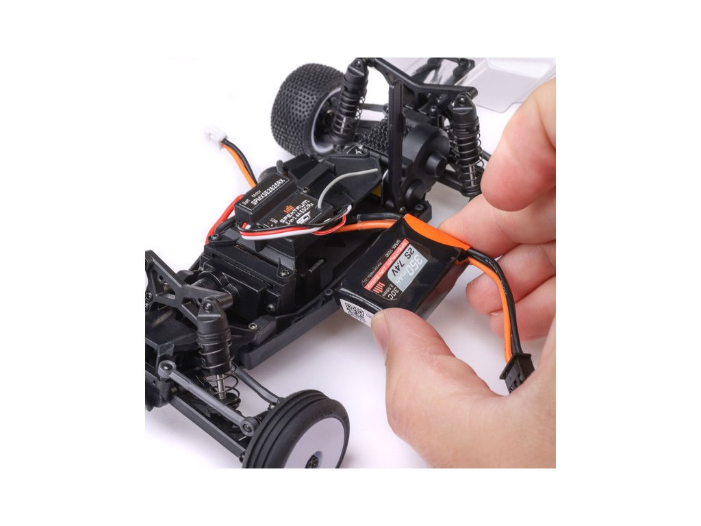 Díky svému designu inspirovanému TLR, posouvá Losi Micro-B na další úroveň výkonu. Konstrukce je inspirována modelem, který vyhrál v roce 2023 mistrovství světa IFMAR. Model obsahuje nastavitelné a laditelné tlumiče plněné olejem, které zlepšují ovladatelnost a absorbují nerovnosti a skoky. Černě eloxované hliníkové šasi je pevné a tuhé. 350mAh LiPol baterie prodlužuje dobu provozu na téměř 20 minut. Když pak přijde čas na nabíjení, snadno použitelná nabíječka USB-C to zvládne za méně než hodinu. Maximální rychlost až 20 km/hod se může zdát naprosto šílená na model této velikosti. Pokud si však nejste jisti, zda jste připraveni to zvládnout, přiložený vysílač Spektrum SLT2 má přepínač pro omezení rychlosti na 50 % nebo 75 %. Tato funkce omezení plynu je ideální pro mladé nebo nezkušené řidiče.