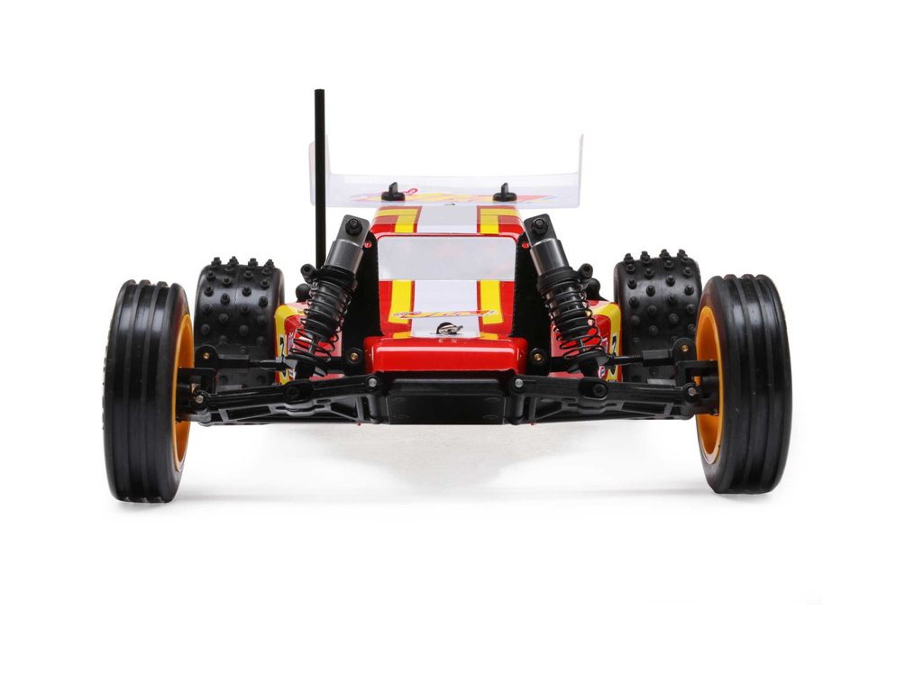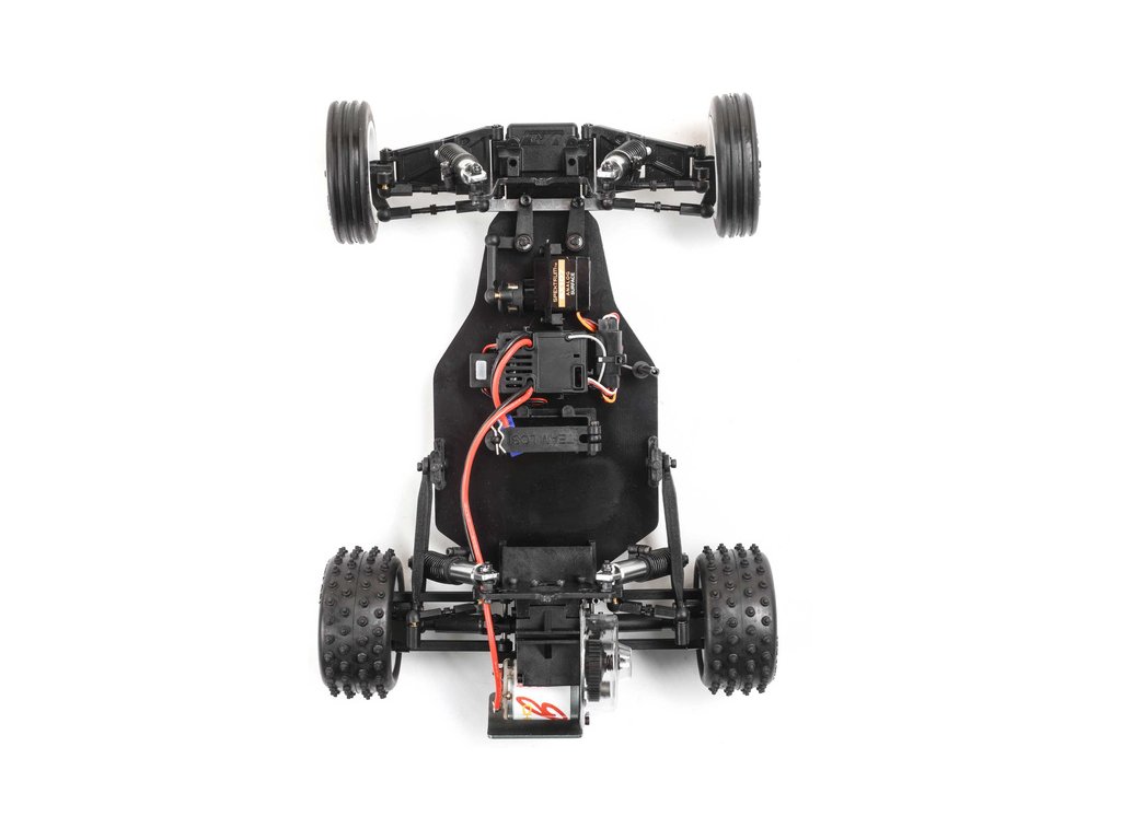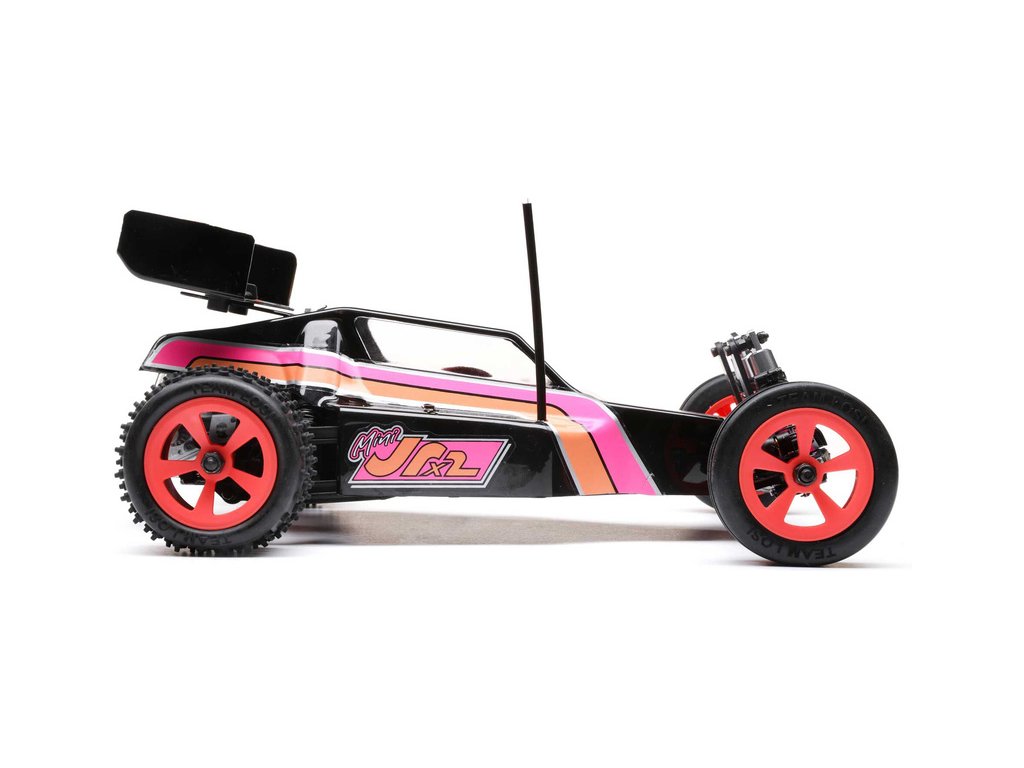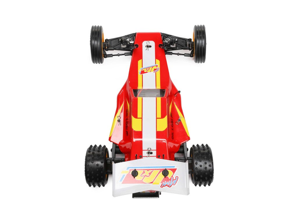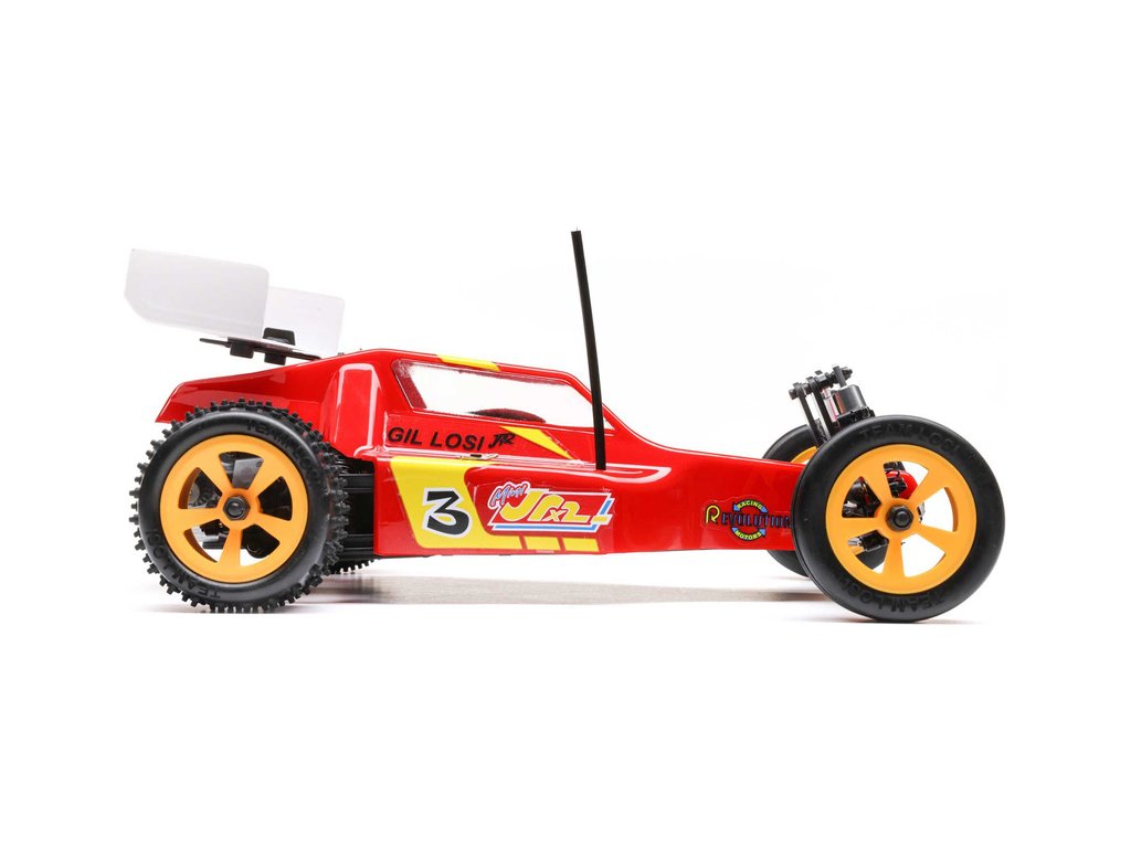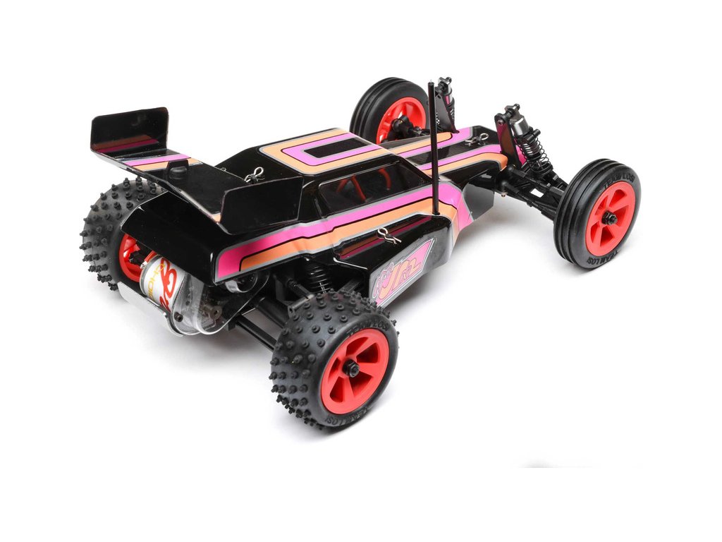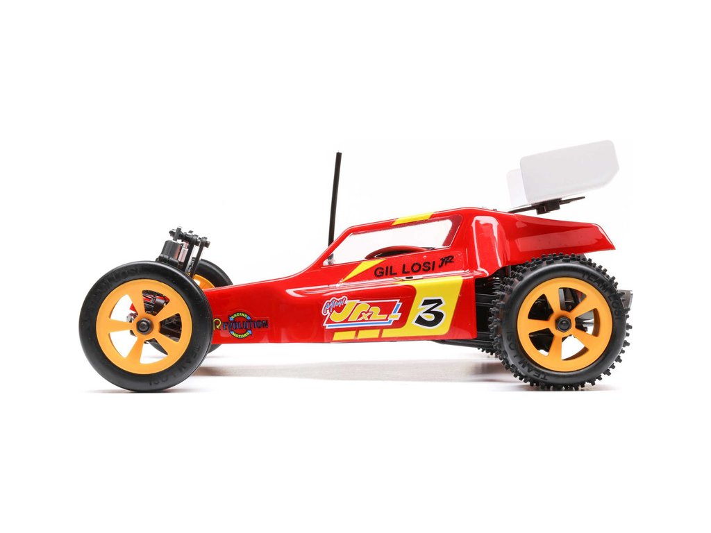 Závodní nadšenci po léta požadovali opětovné vydání buginy JRX2, původního vozidla, které z Losi udělalo celosvětovou značku. Nyní se dočkali s novým Mini-JRX2, který kombinuje původní velmi vydařenou koncepci s moderními vlastnostmi a elektronikou. Zachován byl rovněž tvar karoserie s originální grafikou. Vše co potřebujete k provozu, je obsahem balení. Proto můžete hned vyrazit na vzrušující jízdu s tímto malým rychlým modelem s výbornou ovladatelností.