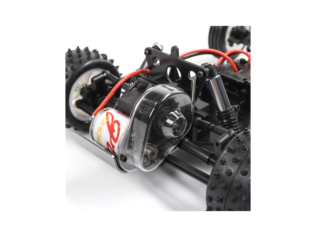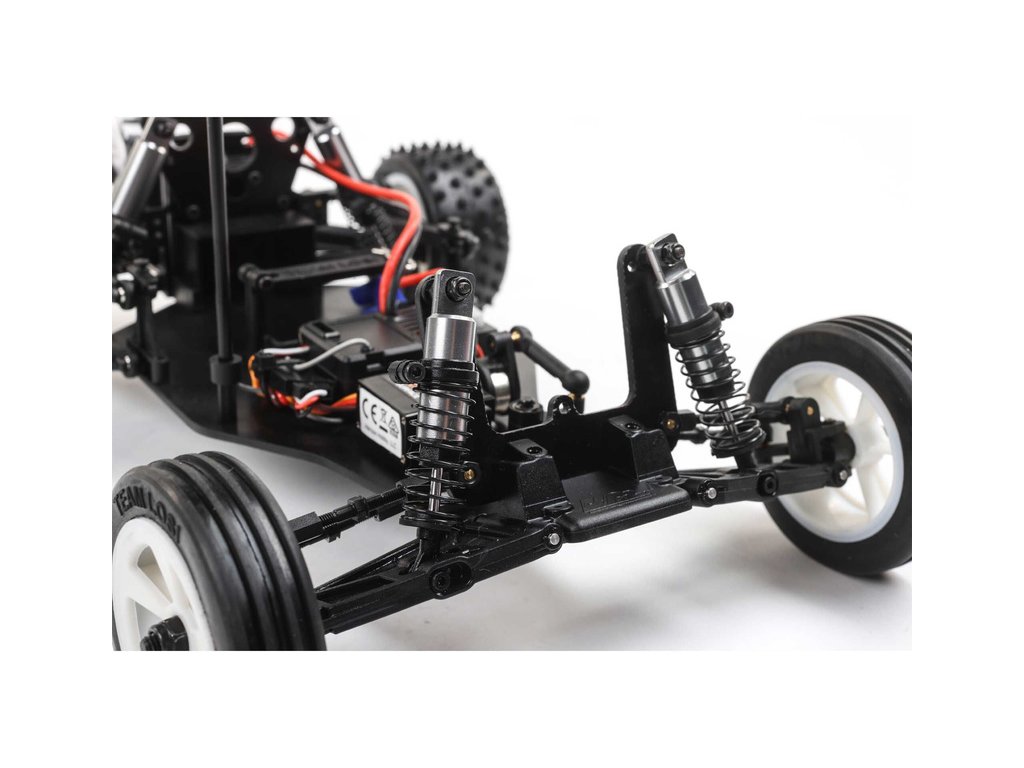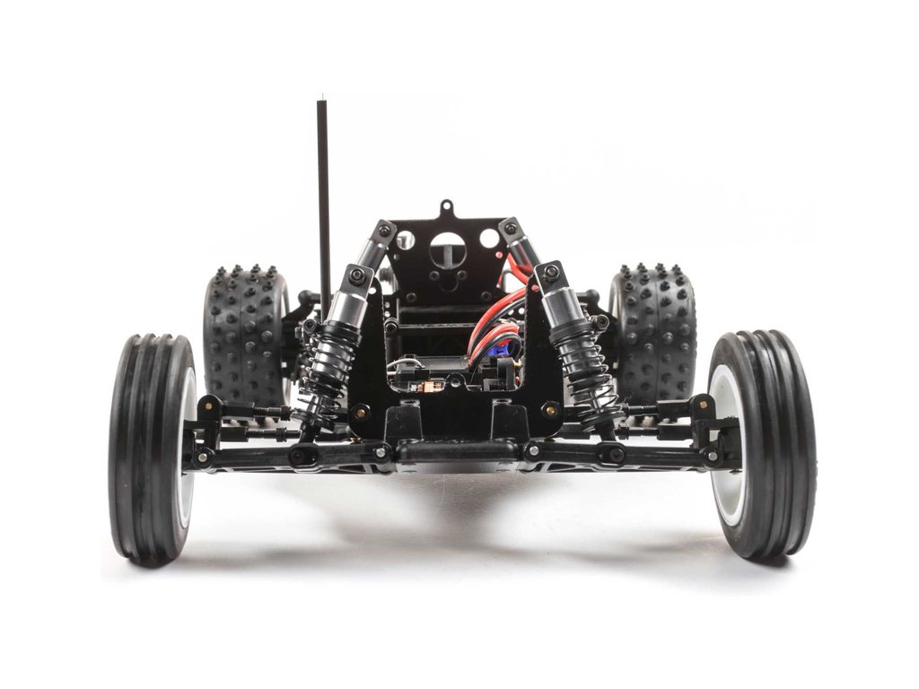 Legendární RC model buggy, Losi® JRX2 v měřítku 1:16 jako retro auto s moderní elektronikou a pohonem. 5-bodová zadní náprava s hliníkovými olejovými tlumiči, motor za zadní nápravou pro maximální přilnavost na trati, drážkované přední pneumatiky pro přesné vedení na trati a kolíková zadní pneumatika pro maximální záběr. Laminátová deska šasi pro tuhost podvozku. Ikonická karosérie JRX2, výkonný stejnosměrný motor, baterie LiPol a RC souprava 2,4GHz. To vše pro váš úžasný zážitek z jízdy.