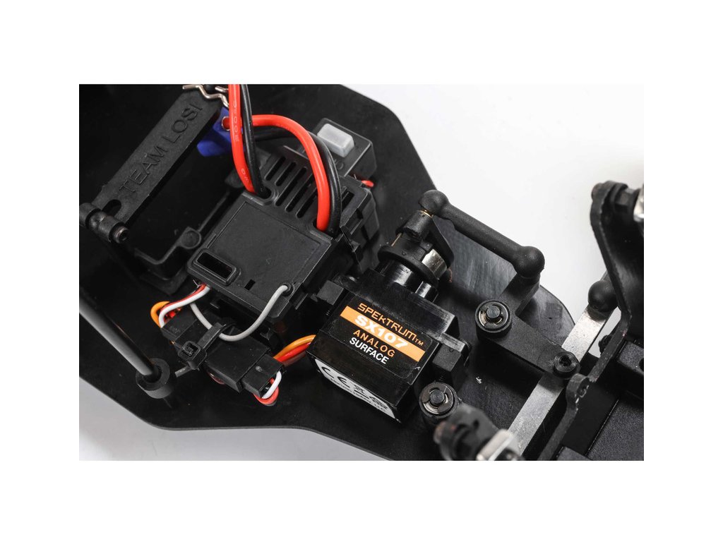 Kombinovaná řídící jednotka obsahuje 25A regulátor a Spektrum přijímač SLT. Funkce jsou snadno nastavitelné pomocí zkratovacích propojek a obsahuje i praktický prachotěsný vypínač. Propojkami lze nastavit typ baterie (2S Lipo, 6 čl. NiMH) a mód vpřed/vzad nebo vpřed/vzad/brzda.