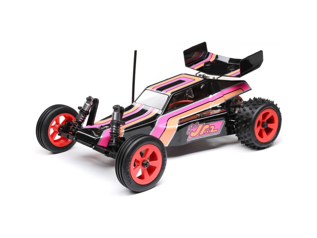 Legendární RC model buggy, Losi® JRX2 v měřítku 1:16 jako retro auto s moderní elektronikou a pohonem. 5-bodová zadní náprava s hliníkovými olejovými tlumiči, motor za zadní nápravou pro maximální trakci. Ikonická karosérie JRX2, baterie LiPol a RC souprava 2,4GHz.