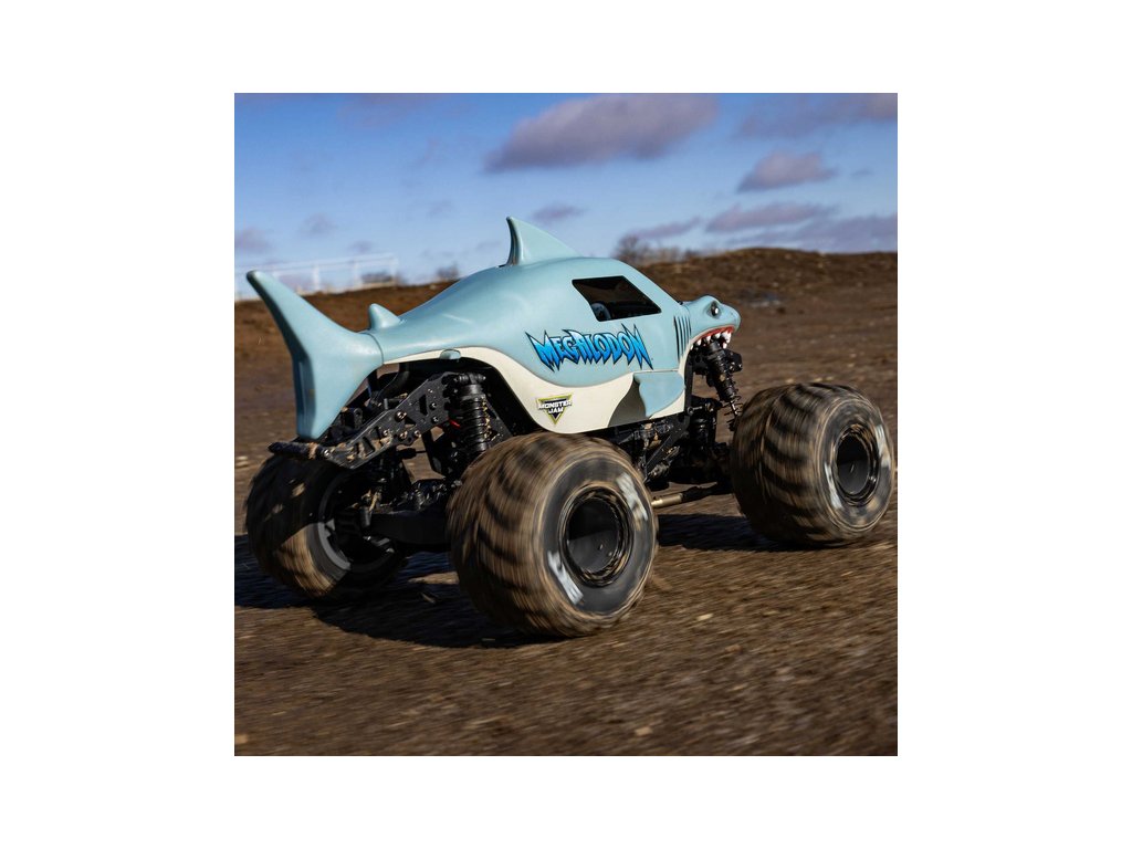 RC model auta Losi Mini LMT v měřítku 1:18, přináší sílu a jízdní vlastnosti větších monster trucků a přitom se vejde do batohu. Model na zmenšené platformě LMT obsahuje stejnosměrný pohon 4WD, licencovanou karoserii a realistické pneumatiky BKT. Baterie a USB nabíječ v balení.