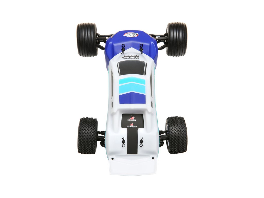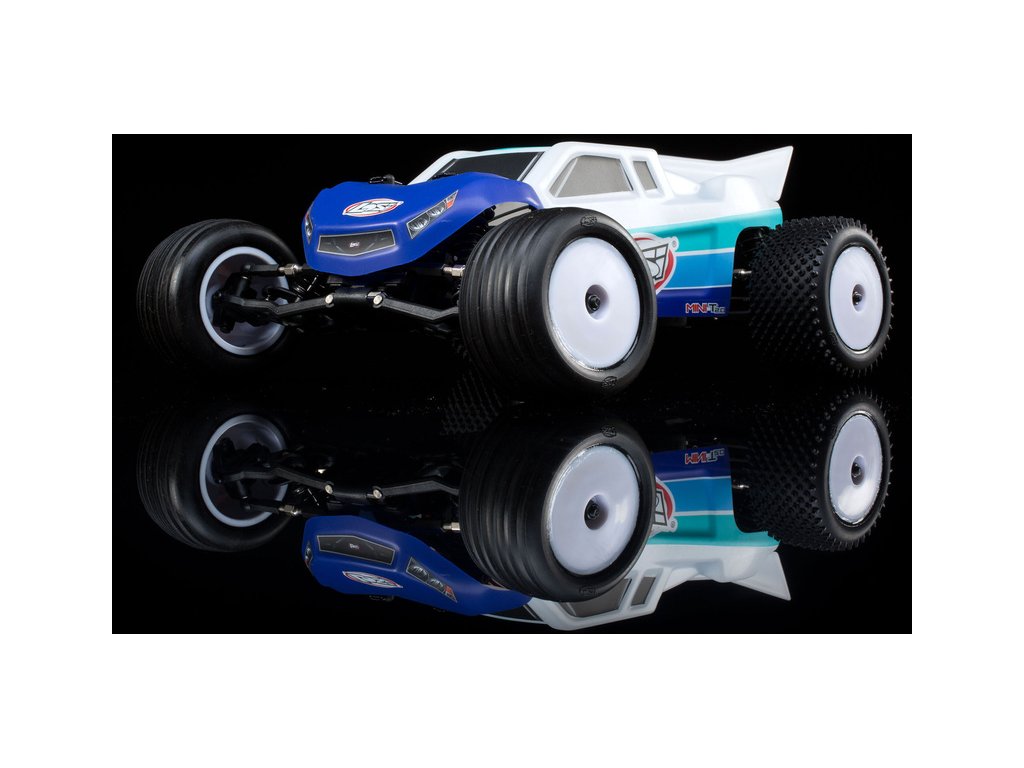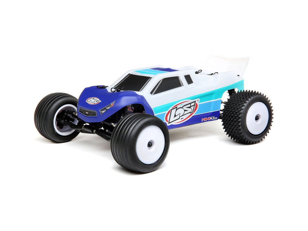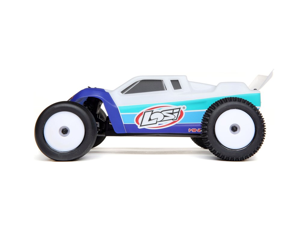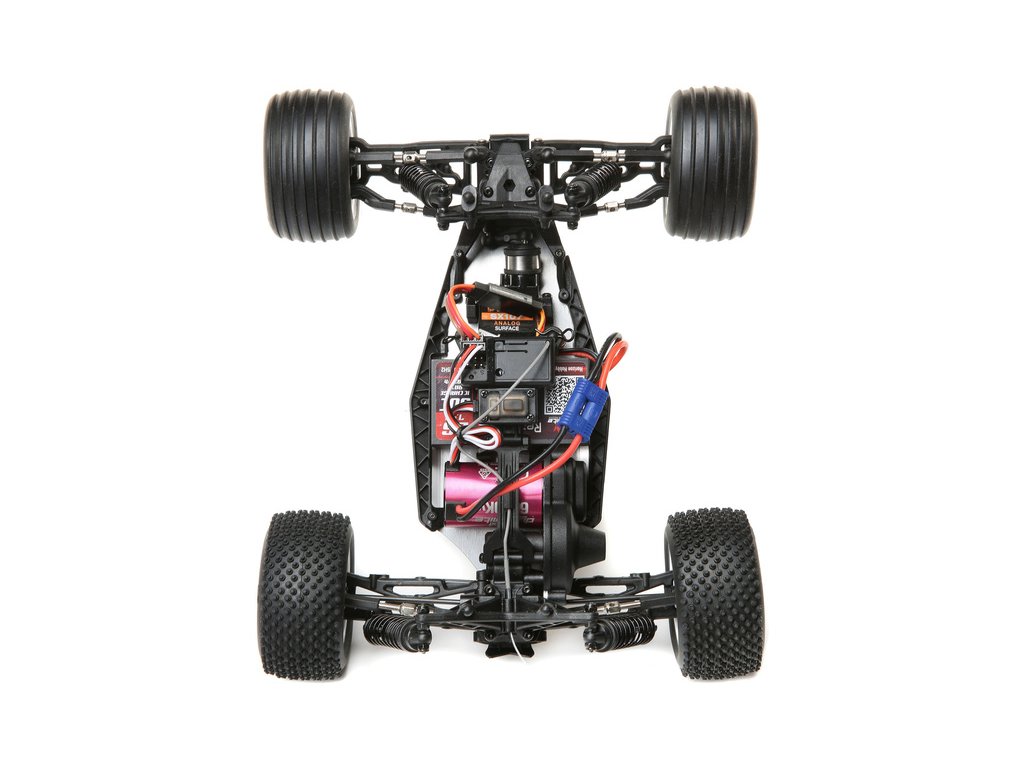 S autem Mini-T SB BL můžete závodit na zahradě nebo venku v terénu. Nenáročný a skladný model pro zábavu s přáteli, model má proporcionální ovládání, řízení je v modelu zajištěno mini servem Spektrum se servo saverem na výstupní hřídeli, k ovládání je přiložen vysílač v pásmu 2,4GHz a voděodolný 3-kanálový přijímač Horizon® 2.4Ghz. Model pohání výkonný motor Dynamite® 6000Kv s integrovaným regulátorem. Mini-T 2.0 je vybaven kuličkovými ložisky, která zvyšují výkonnost díky snížení tření hnacího ústrojí. Motor je ve středovém uspořádání pro lepší vyvážení, pro maximální traxi mají zadní pneumatiky kolíkový dezén, zatímco přední mají drážkovaný dezén pro lepší vedení směru.