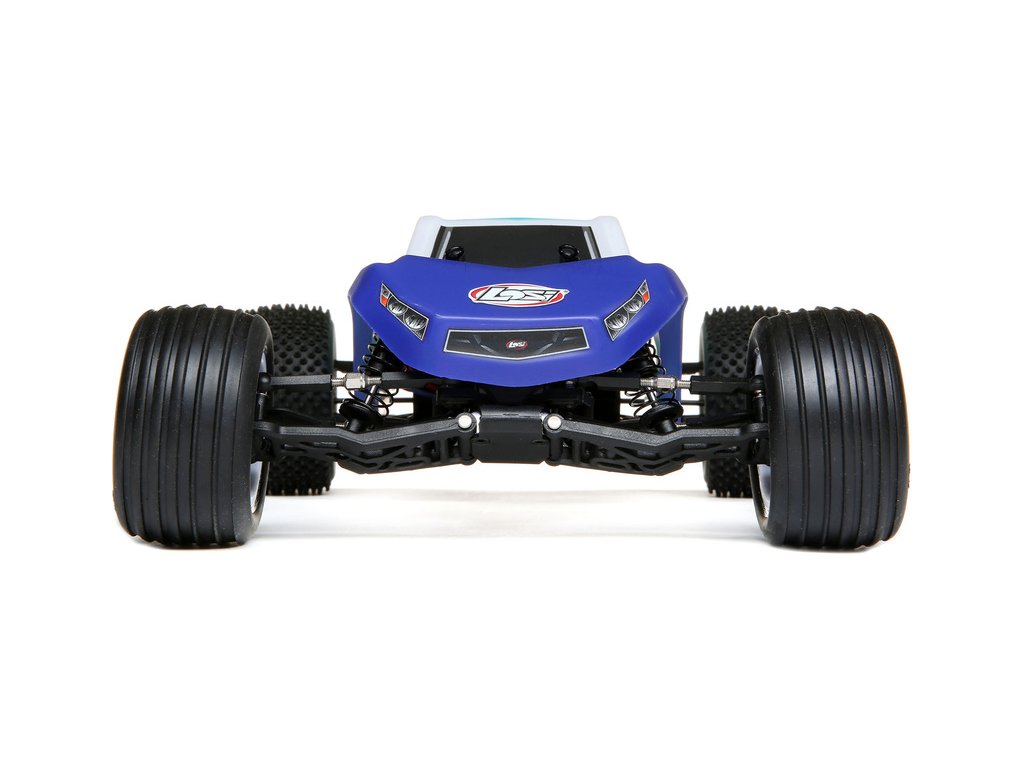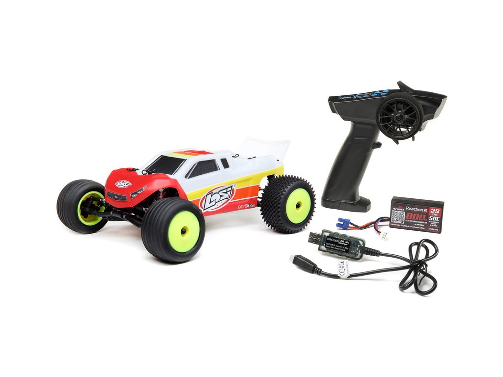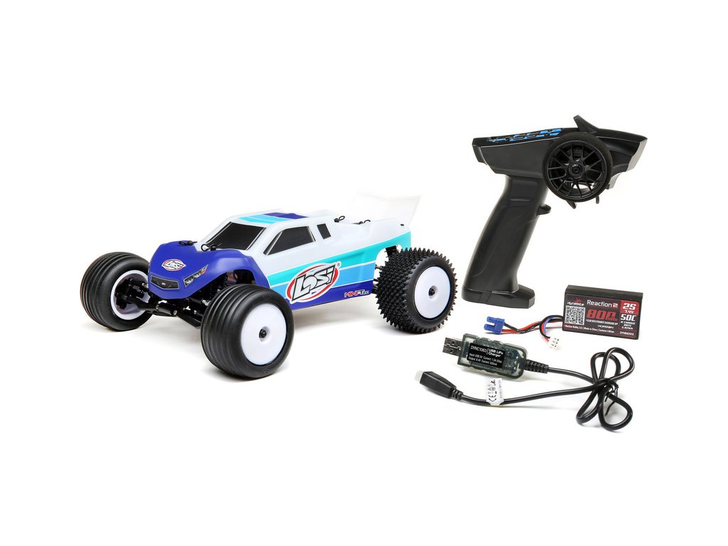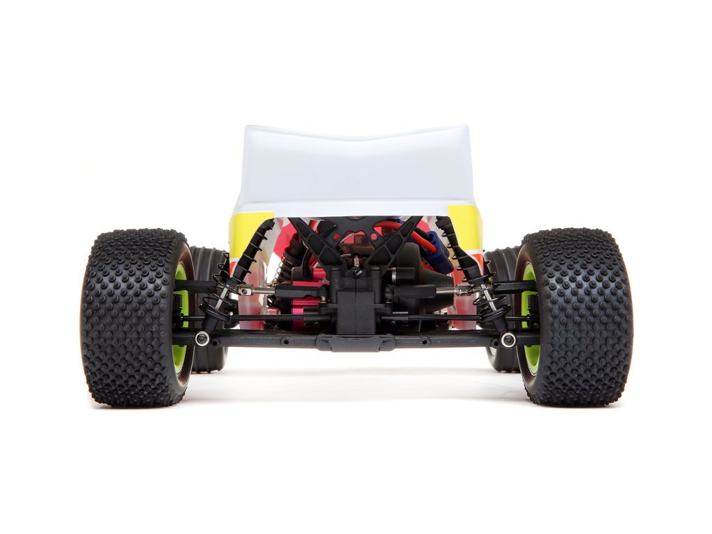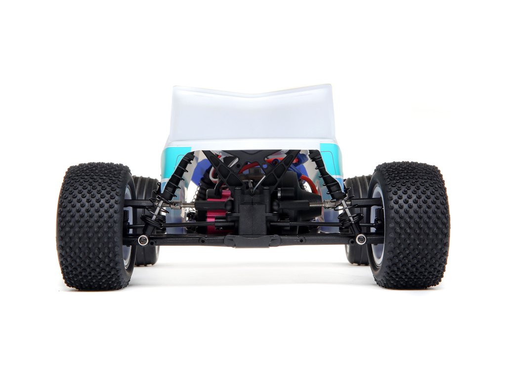 S autem Mini-T SB BL můžete závodit na zahradě nebo venku v terénu. Nenáročný a skladný model pro zábavu s přáteli, model má proporcionální ovládání, řízení je v modelu zajištěno mini servem Spektrum se servo saverem na výstupní hřídeli, k ovládání je přiložen vysílač v pásmu 2,4GHz a voděodolný 3-kanálový přijímač Horizon® 2.4Ghz. Model pohání výkonný motor Dynamite® 6000Kv s integrovaným regulátorem. Mini-T 2.0 je vybaven kuličkovými ložisky, která zvyšují výkonnost díky snížení tření hnacího ústrojí. Motor je ve středovém uspořádání pro lepší vyvážení, pro maximální traxi mají zadní pneumatiky kolíkový dezén, zatímco přední mají drážkovaný dezén pro lepší vedení směru.