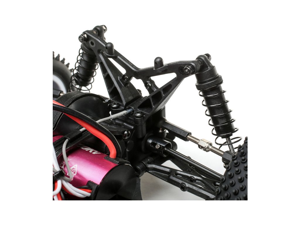 Geometrie odpružení Mini-T 2.0 byla odvozena od konstrukce auta TLR 22T a poskytuje vyvážené řízení a výbornou trakci.